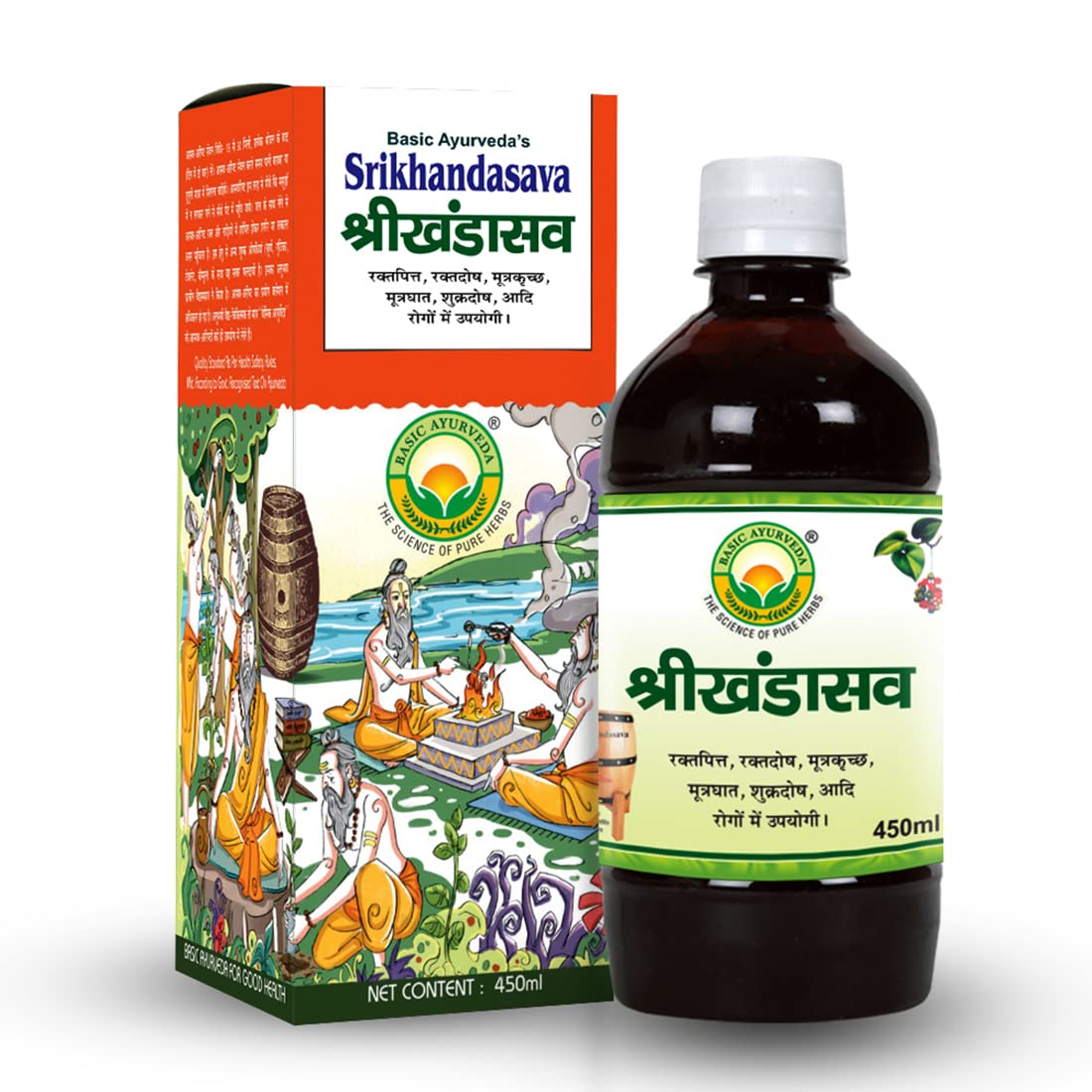 Basic Ayurveda Srikhandasava Syrup – 450ml | Herbal Digestive Tonic for Wellness & Strength | Certified Ayurvedic Formula