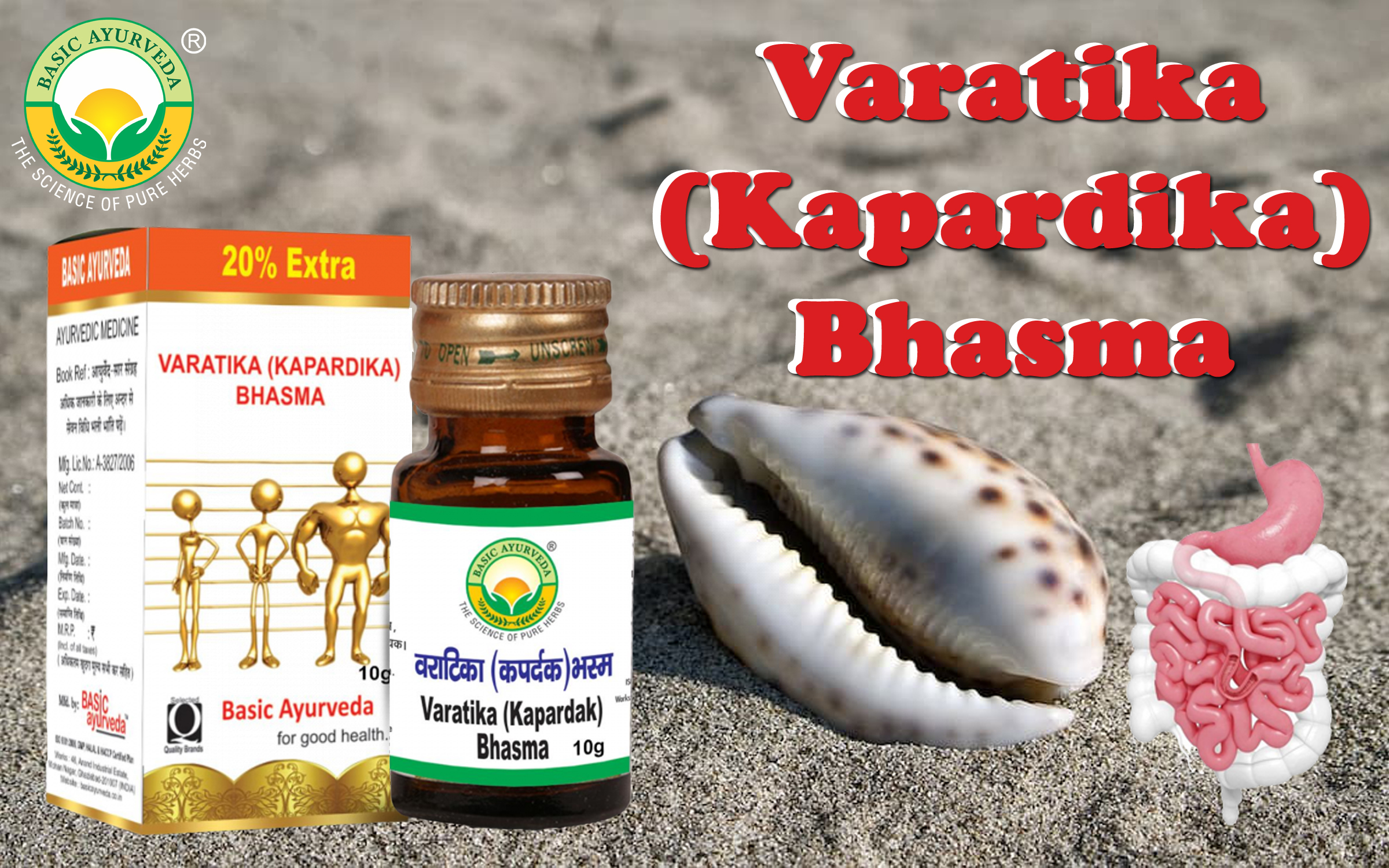 • Basic Ayurveda's Varatika (Kapardika) Bhasma is an Ayurvedic formulation in powder form. Helpful for stomach-related problems like stomach pain constipation digestion bloating loss of appetite indigestion and Pitta Health.