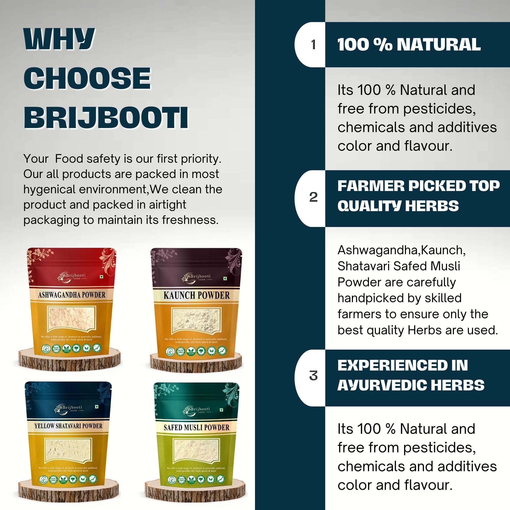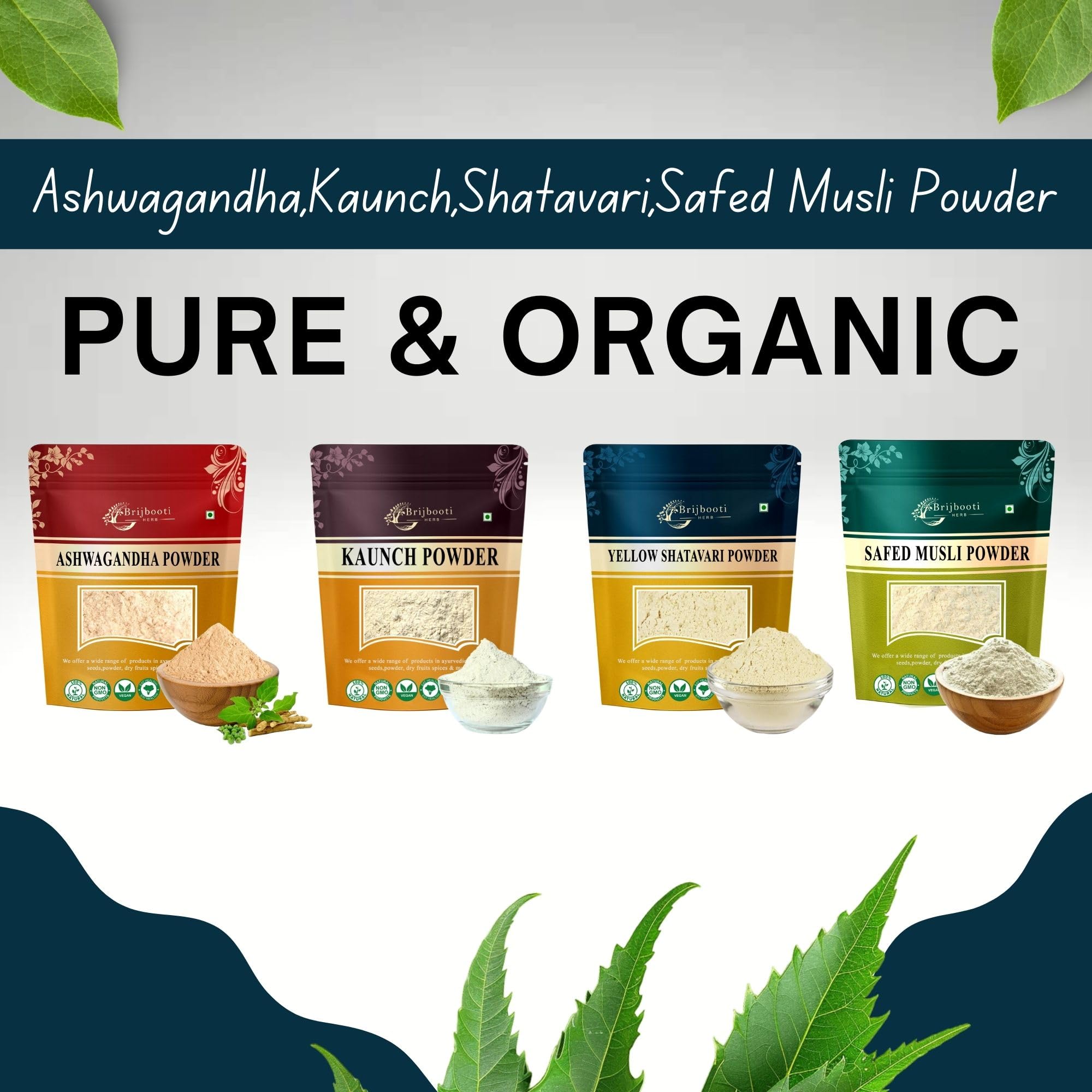 Birju Mahavir Combo Pack of Safed Musli - Ashwagandha - Kaunch - Shatavari Powder 200 gram Each Multi-colored Powder 800 gram