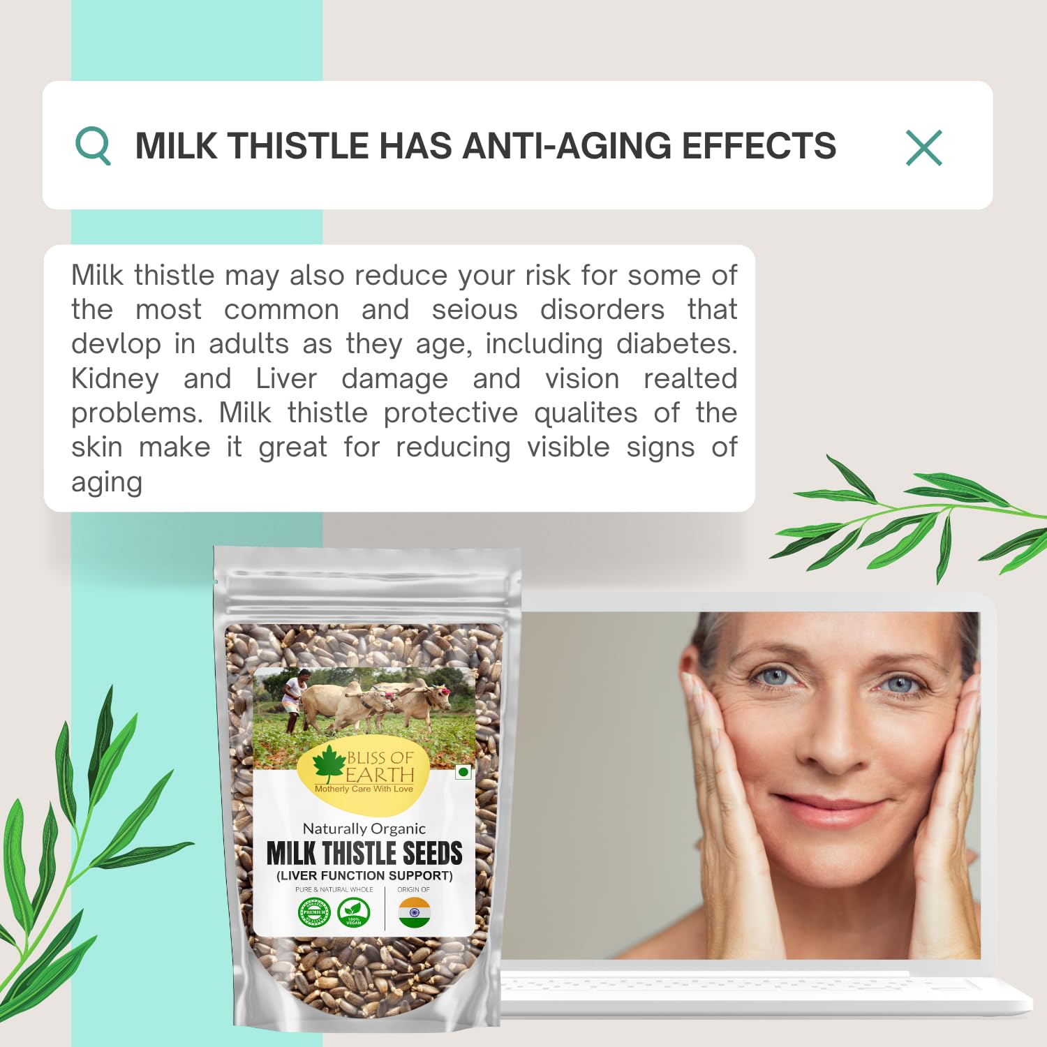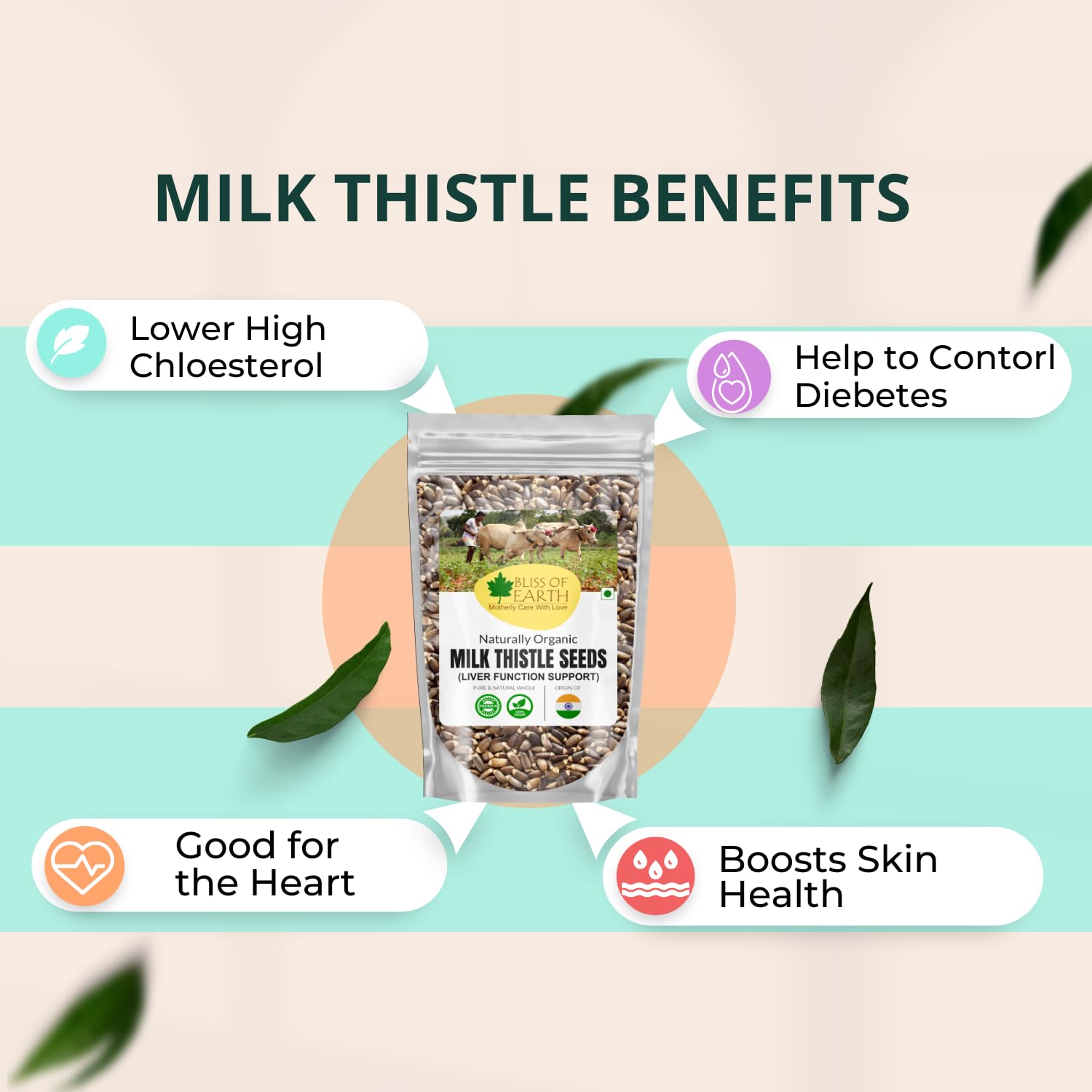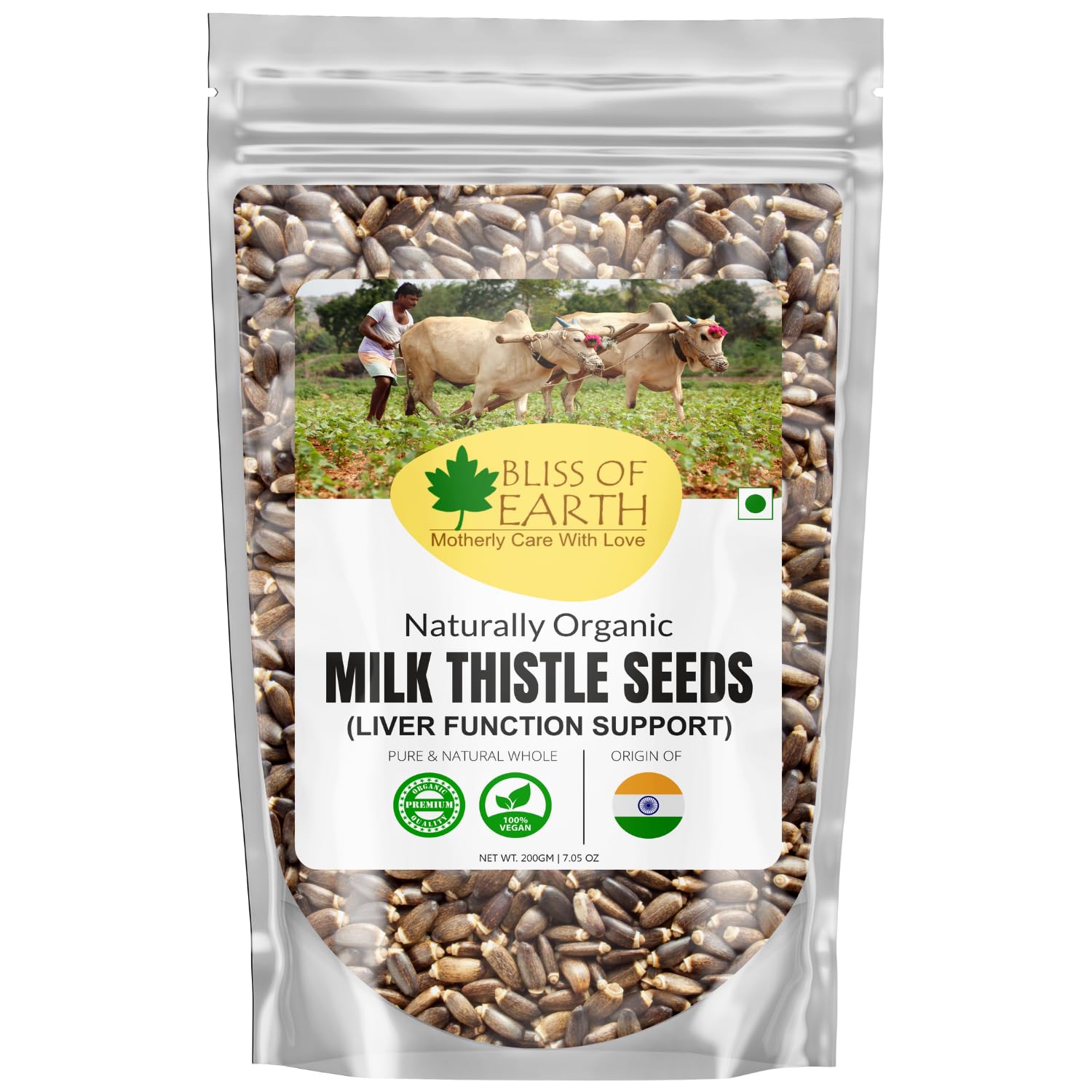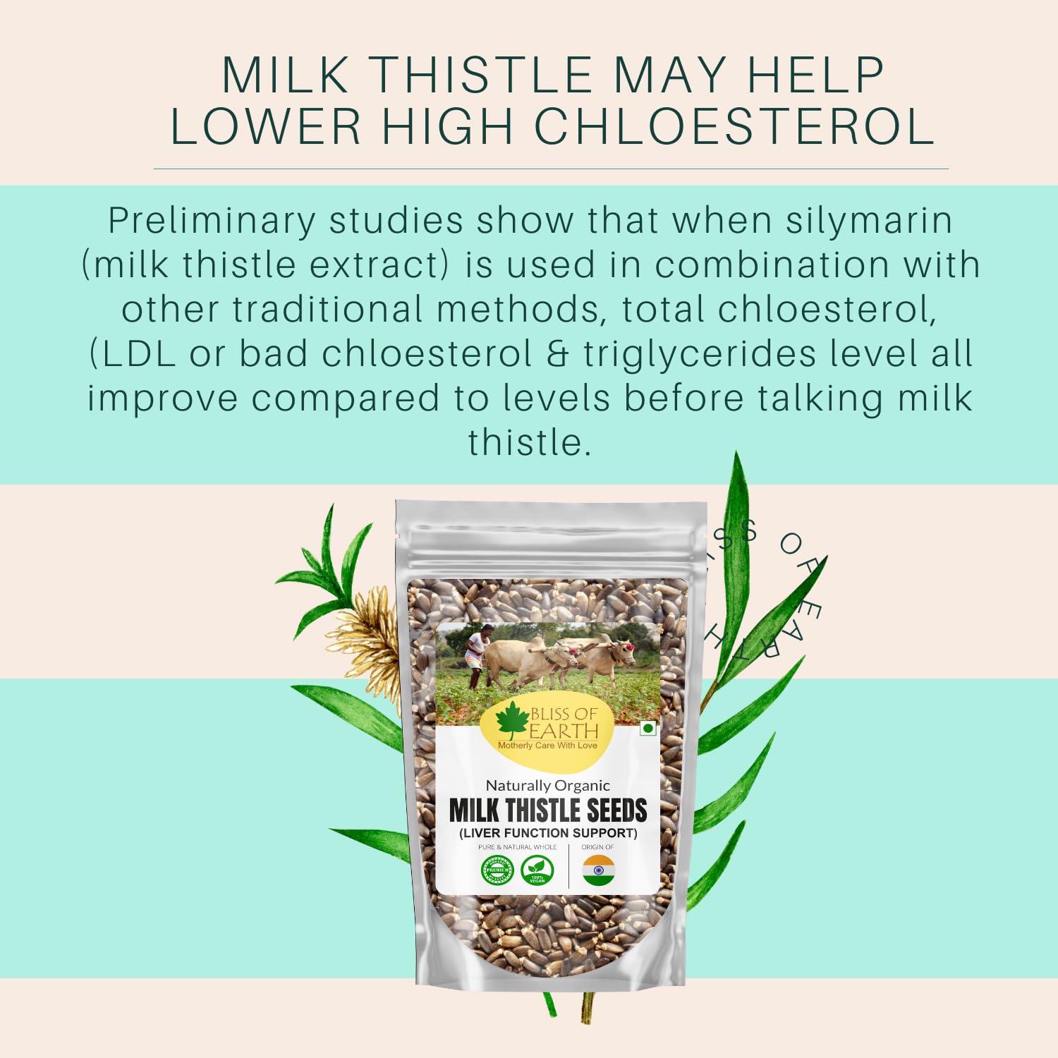 Bliss of Earth Milk thistle seeds are used as herbal remedy derived from the milk thistle plant also known as Silybum marianum. The active ingredients "silymarin" extracted from milk thistle is known to have antioxidant antiviral and anti-inflammatory properties.
