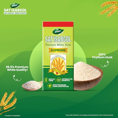 Dabur Sat Isabgol (Psyllium Husk) - 180g + 50g Free | Rich in Fiber | Provides Effective Relief from Constipation & Bloating | Promotes Bowel Health | Non-Habit Forming | 100% Ayurvedic