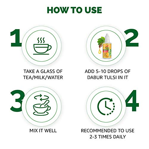 • Dabur Tulsi drops is made from the goodness of five rare tusli which has antioxidant properties
