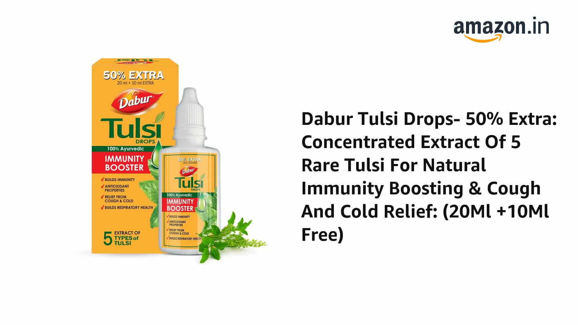 Dabur Tulsi Drops has antioxidant properties which helps boost immunity .It helps provide relief from cough and cold & helps in relieving mucus . It has antimicrobial properties . It contains the extracts of 5 rare tulsi which has a lot of benefits . The intake of tulsi is the best way of intestine cleaning. It also helps in stress management .It is good for skin joint and liver health .
