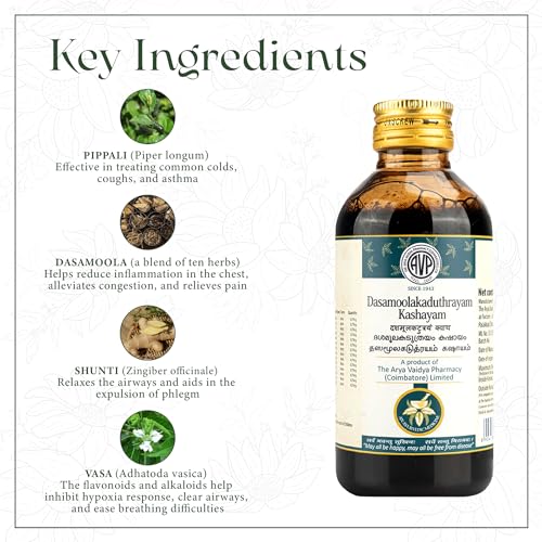 Dasamoolakaduthrayam Kashayam is a herbal decoction used for the treatement in cough cold and common cold. Consuming it on regular basis helps in reducing the common cold as it is beneficial in nasal congestion and make breating feel easier. It also helps in Sinus problems which helps to possess anti-inflammatory properties. Soothes cough and shortness of breath. Alleviate headache and pain on the flanks. Improves digestion.