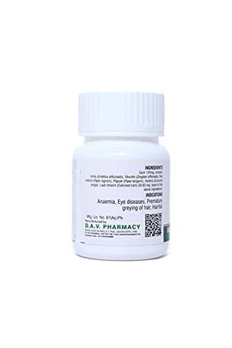 Each 125mg. contains Amla (Emblica officinalis) Shunthi (Zingiber officinalis) Kali marich (Piper nigrum) Pippali (Piper longum) Haridra (Curcuma longa) Lauh bhasm (Calcined iron)-20.83 mg. (each of the above ingredients)