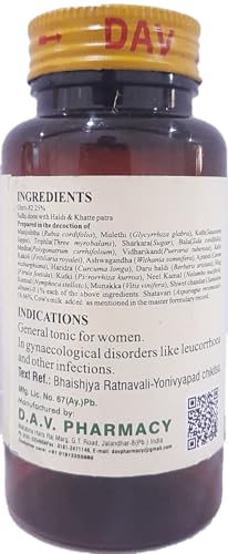 Ghrit-82.25% Sidhi done with Haldi & Khatte patra Prepared in the decoction of: Manjishtha (Rubia cordifolia) Mulethi (Glycyrrhiza glabra) Kuth(Saussurea lappa) Triphla(Three myrobalans) Sharkara(Sugar) Bala(Sida cordifolia) Medha(Polygonatrum cirrhifolium) Vidharikand(Pueraria tuberosa) Kshir Kakoli (Fritillaria royalei) Ashwagandha (Withania somnifera) Ajmod (Carum roxburghiana) Haridra (Curcuma longa) Daru haldi (Berberis aristata) Hing (Ferula foetida) Kutki (Picrorrhiza kurroa) Neel Kamal (Nelumbo nucifera) Kumud (Nymphoca stellata) Munakka (Vitis vinifera) Shwet chandan (Santalum album)-0.1% each of the above ingredients. Shatavari (Asparagus recemosus)-16.66% Cow's milk added as mentioned in the master formulary record.