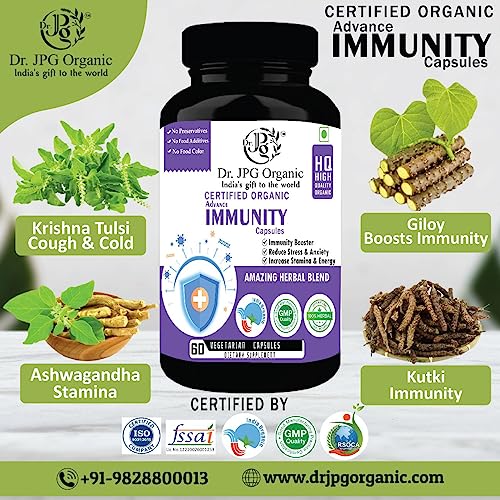Dr. JPG Organic Advance immunity 500mg 60 cap. | INDIA Organic Certified | ISO & GMP Certified.