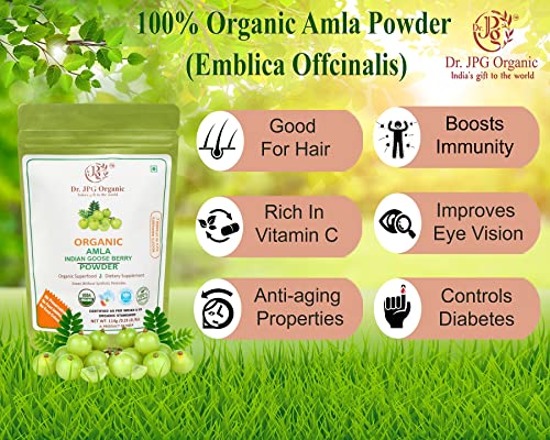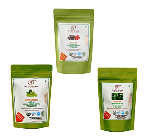 Dr. JPG Organic Amla Hibiscus & Bhringraj Powder For Hair | INDIA Organic Certified | 114g Each Powder (Amla Hibiscus & Bhringraj)