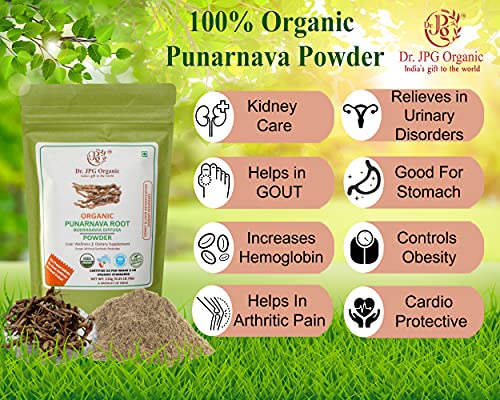 Dr. JPG Organic Punarnava Powder For Liver & Kidney Wellness/Sathi Jadd Boerhavia Diffusa/INDIA ORGANIC Certified/Pure Organic Powder (114g Pack Of 2)