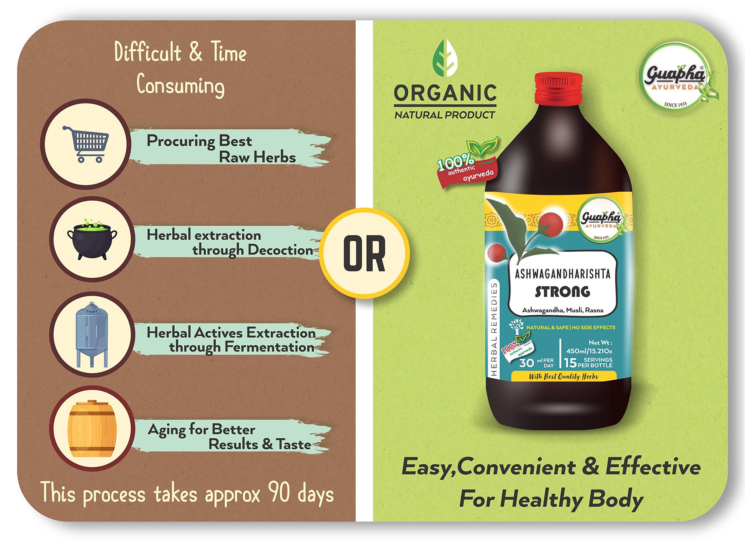 Guapha Ashwagandharishta is Ashwagandha based ayurvedic liquid preparation used in a variety of aliment and general debility.