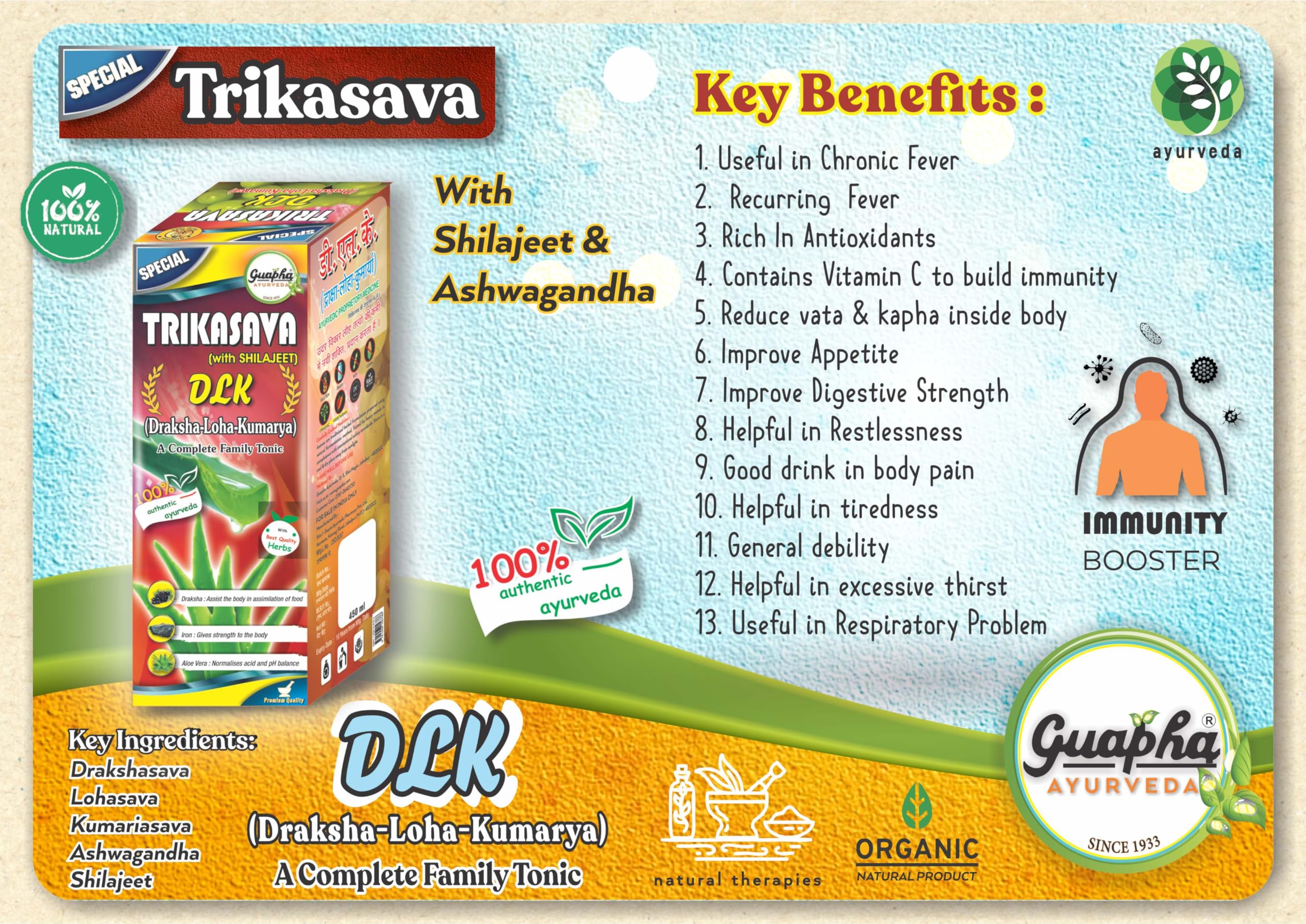 GUAPHA TRIKASAVA SPECIAL (DLK) WITH SHILAJEET AND ASHWAGANDHA - 450ML