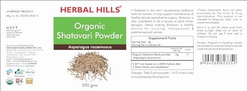 Herbal Hills Organic Shatavari Powder (Asparagus Racemosus) | 200 gm | Pack Of 1 | Used To Maintain The Balance of Women Health