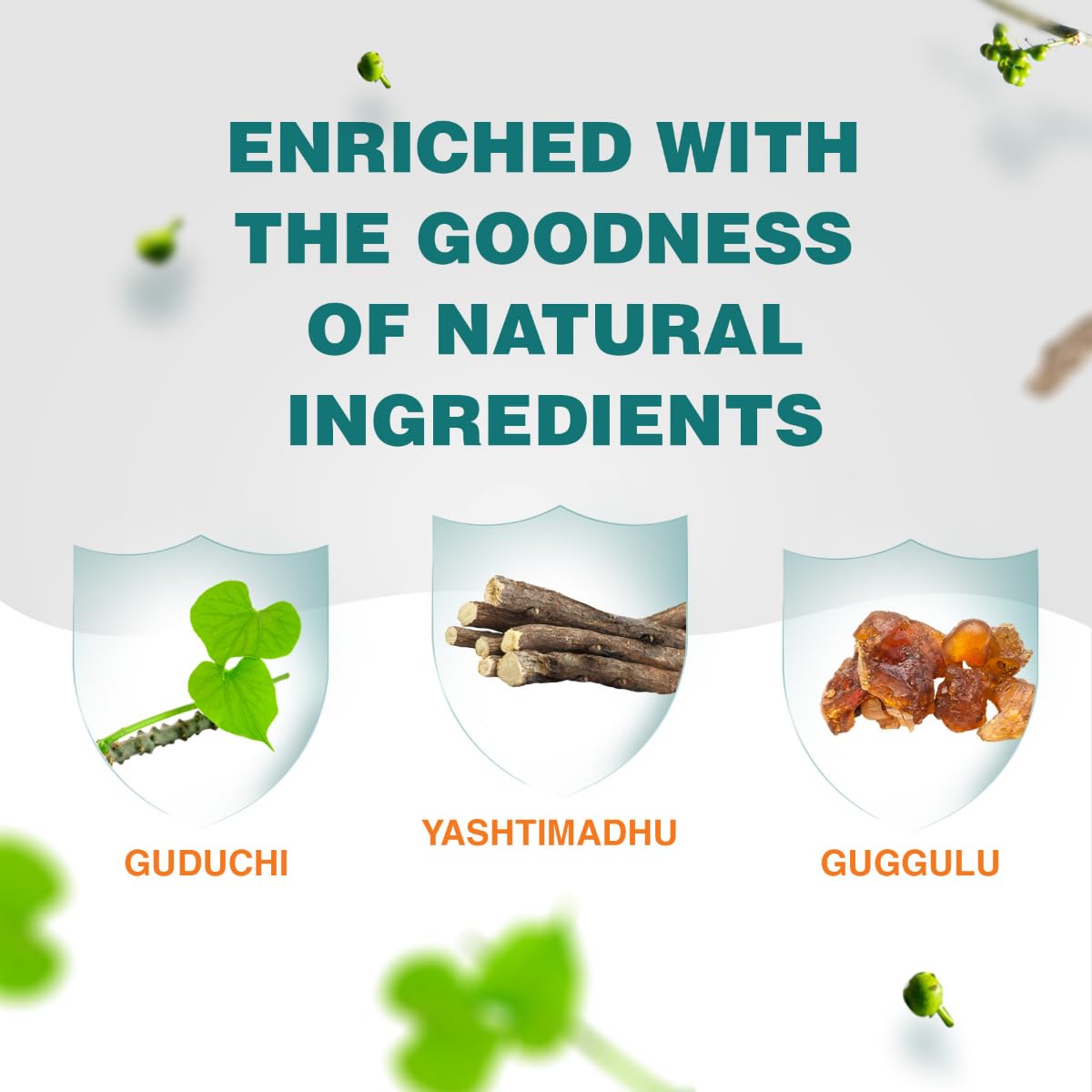 Ingredients:-Balsamodendron Mukul: 0.80g Tinospora cordifolia: 14mg Rubia cordifolia: 15mg Emblica officinalis: 8mg Glycyrrhiza glabre: 6mg Saussurea lappa: 13mg.