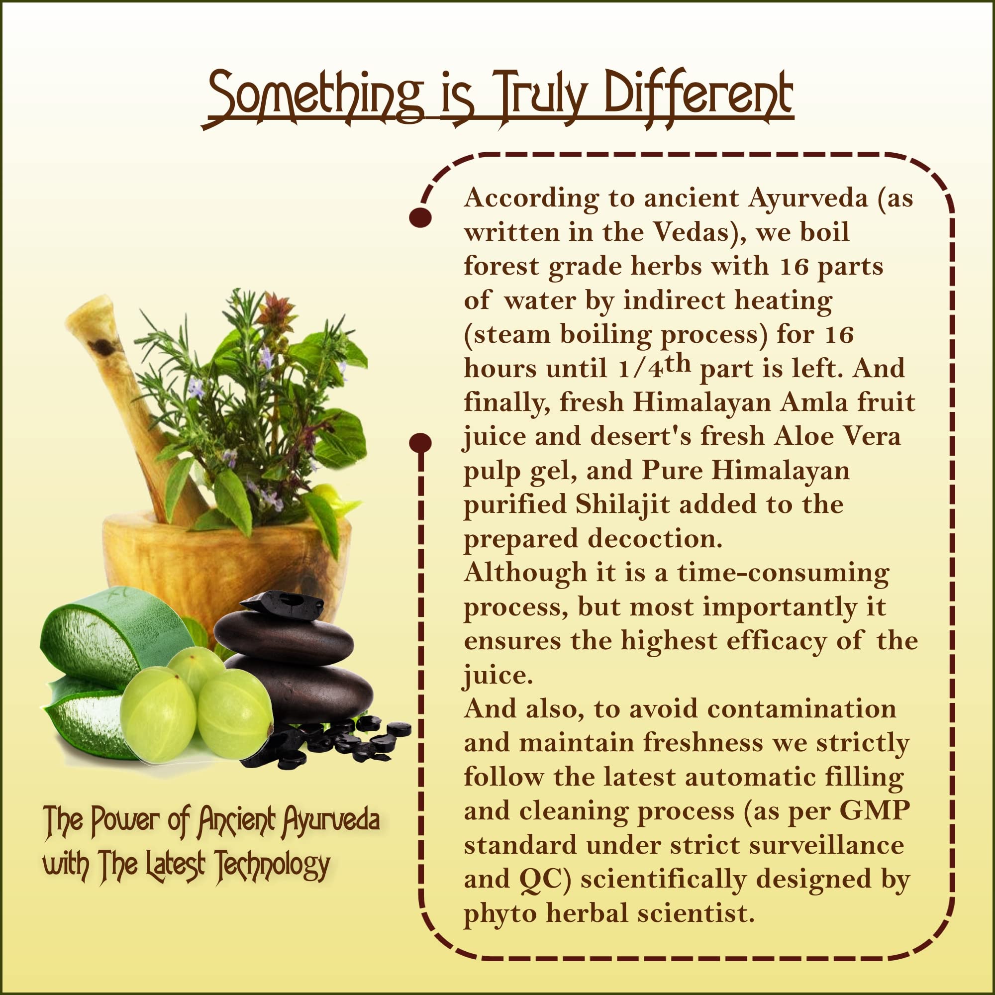 THE POWER OF ANCIENT AYURVEDA WITH THE LATEST HI-TECH TECHNOLOGY : According to ancient Ayurveda (as written in the Vedas) we boil all forest grade herbs with 16 parts water by indirect heating (steam boiling process) for 16 hours until 1/4th part is left