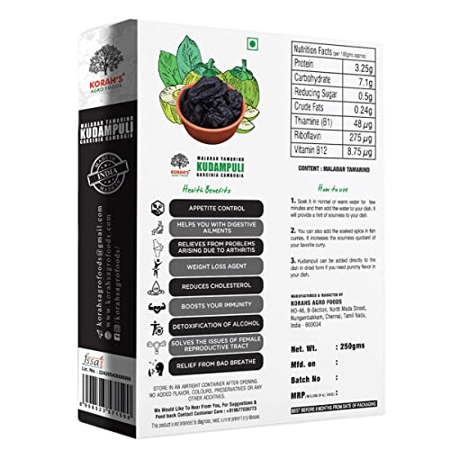 KORAH's AGRO FOODS | Kudampuli/Malabar Tamarind/Garcinia Cambogia/Brindle Berry - 250 grams Tamarind