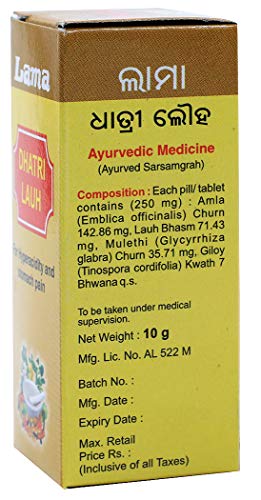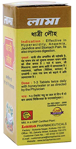 Lama Dhatri Lauh. A Classical Ayurvedic product from Lama Pharmaceuticals. Ingredients are Phyllanthus Emblica Glycyrrhiza Glabra Purified Iron Powder Tinospora cordifolia etc.
