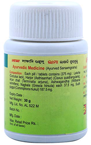 Lama Lakshadi Guggulu Classical Ayurvedic product from Lama Pharmaceuticals. Ingredients are Nagbala Sudh Guggulu Laksha Jarjor Arjun Ashwagandha etc.
