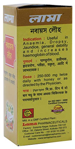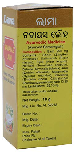 Lama Nawayas Lauh 10 gm (Pack of 2). Classical Ayurvedic product from Lama Pharmaceuticals. Ingredients are Trikatu Triphala Motha Vidang Lauh Bhasma etc.