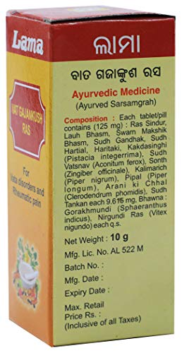 Lama Vatgajankush Ras 10 gm (Pack of 2). Classical Ayurvedic product from Lama Pharmaceuticals. Ingredients are Lauh Bhasma Swarna Makshik Bhasma Harital Haritaki Trikatu etc.