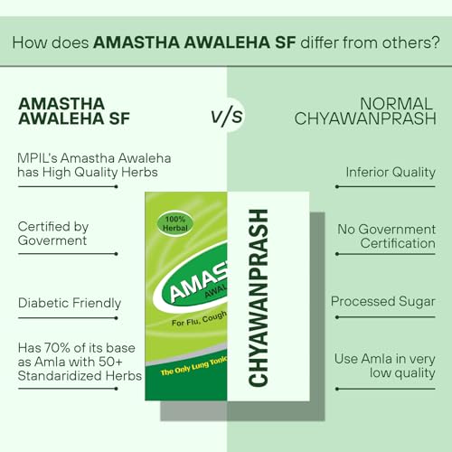 MPIL Amastha Awaleha Sugar Free | Fit for Diabetics | Immunity Booster | For Cold and Cough | Pure and Organic | Goodness of Handpicked Amlas | Enriched with Giloy, Vasa and Tulsi | Ministry of Ayush Approved | Chyawanprash | 250 Grams