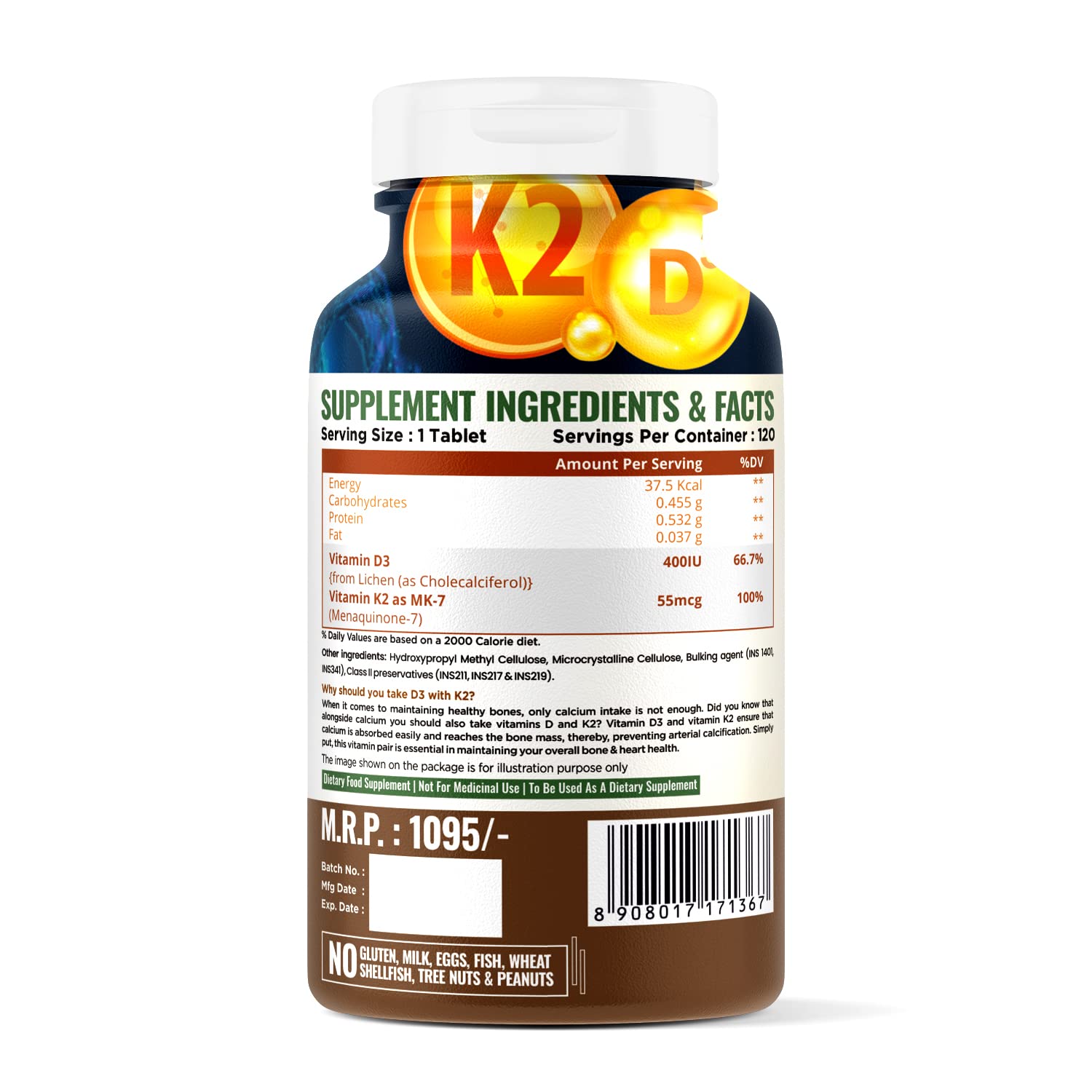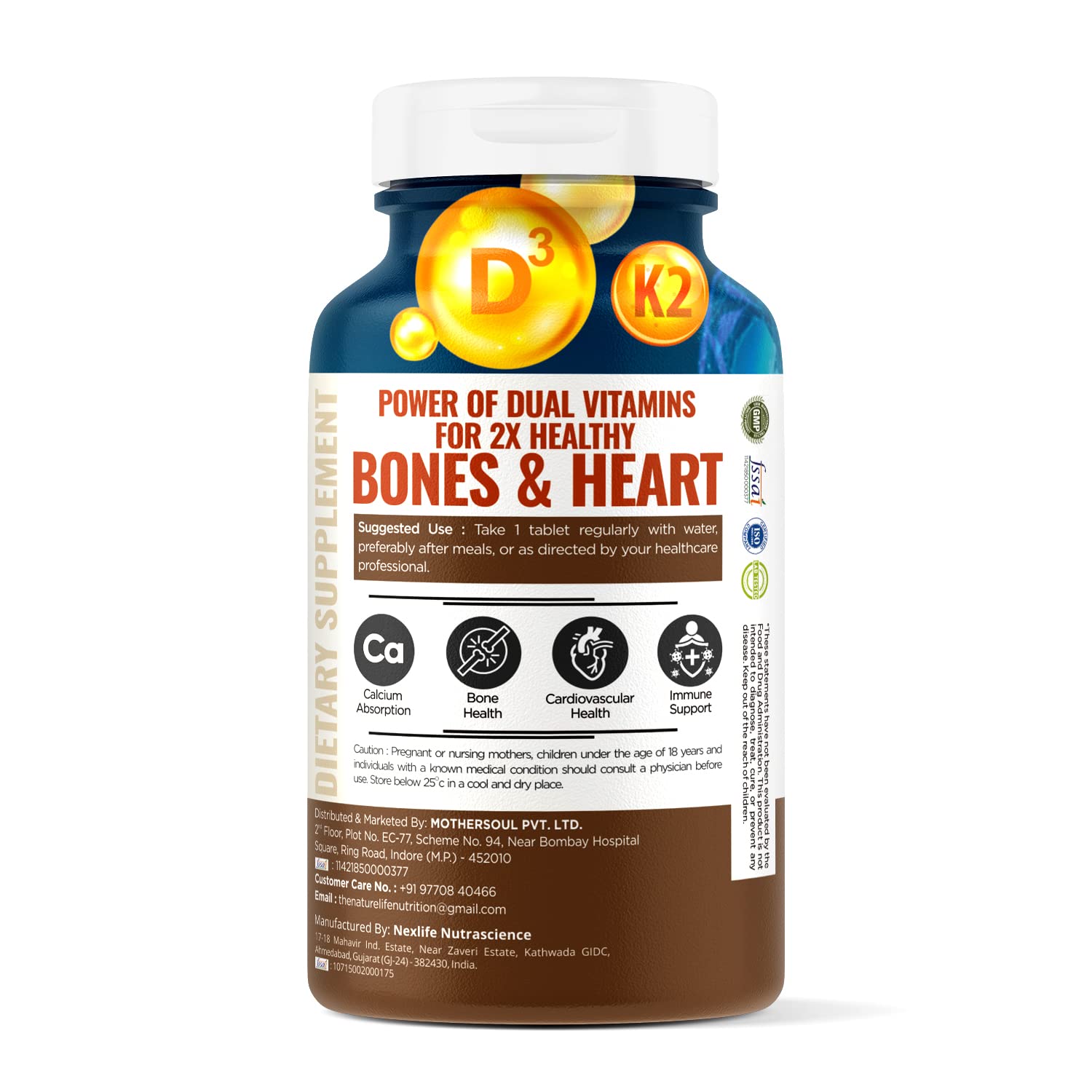 Nature Life Nutrition Vitamin D3+k2 Tabs. are 2X Vitamin power for your bones and . Vitamin D3 amplifies the process of calcium absorption and regulates sufficient levels of calcium in the . But to provide complete support to bone and muscles Vitamin D3 needs adequate levels of Vitamin K2. Vitamin K2 assists Vitamin D3 to keep calcium out of soft tissues like the joints and s and promotes healthy calcium levels in the bones. This duo dose of vitamin works in coordination to enhance calcium absorption escalates bone density and encourages arterial flexibility in your body. Foster your bones and muscles with double vitamin power!