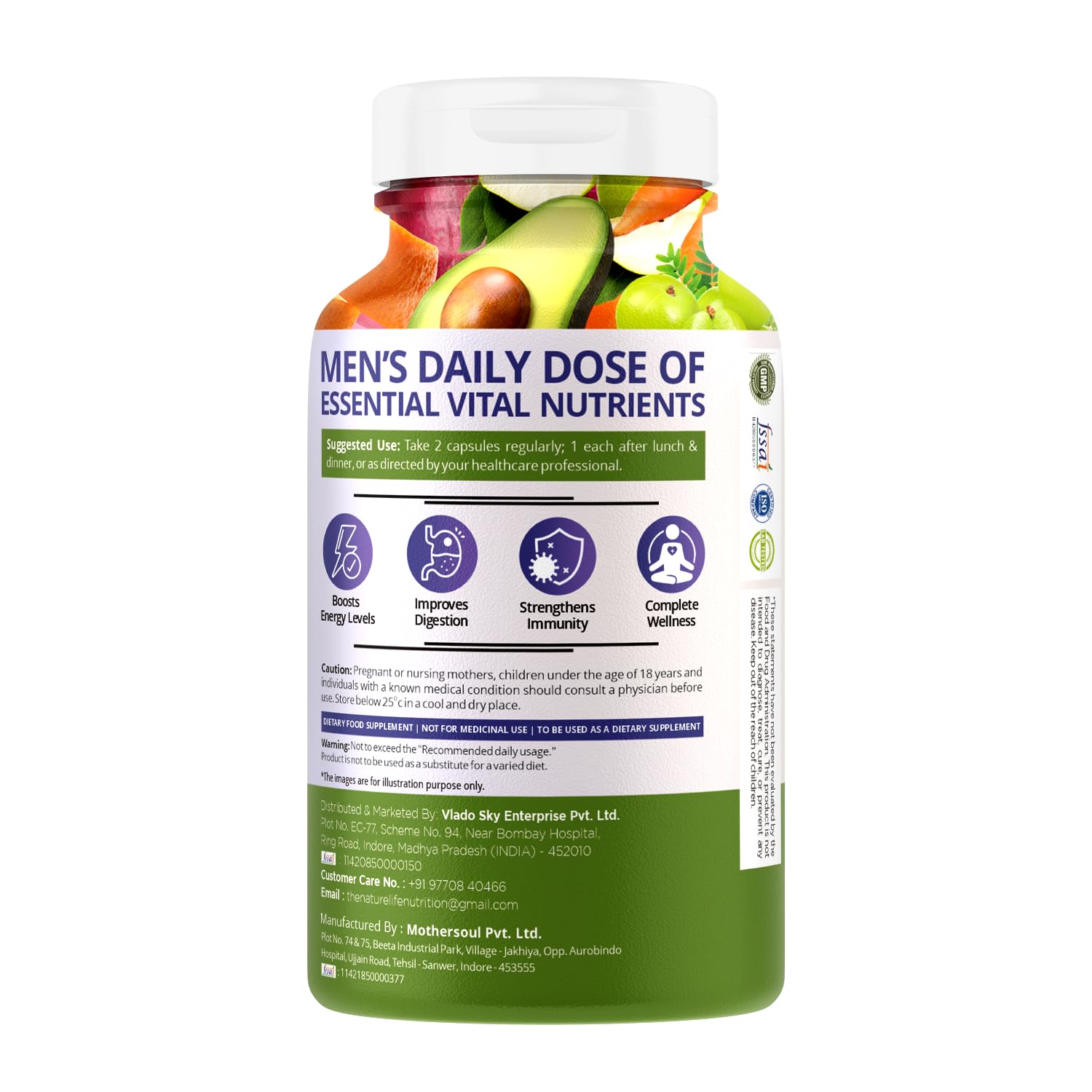 • HIGHER ENERGY: multivitamin supplement FOR MEN with its bio-active nutrients help day-long energy. Right amount of essential Vitamins & mineras per the guidelines set by FSSAI helps in maintaining ENERGY levels throughout the day.