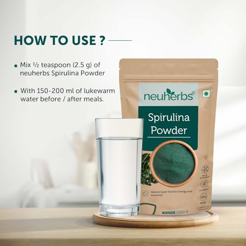 Neuherbs Spirulina Powder (100g, Pack of 1) | For Men & Women | Natural Superfood | Rich in Protein, Vitamins & Minerals | Boost Energy & Immunity | Support Digestion & Skin health