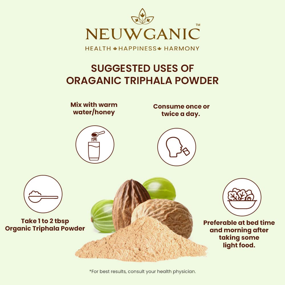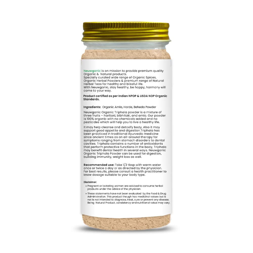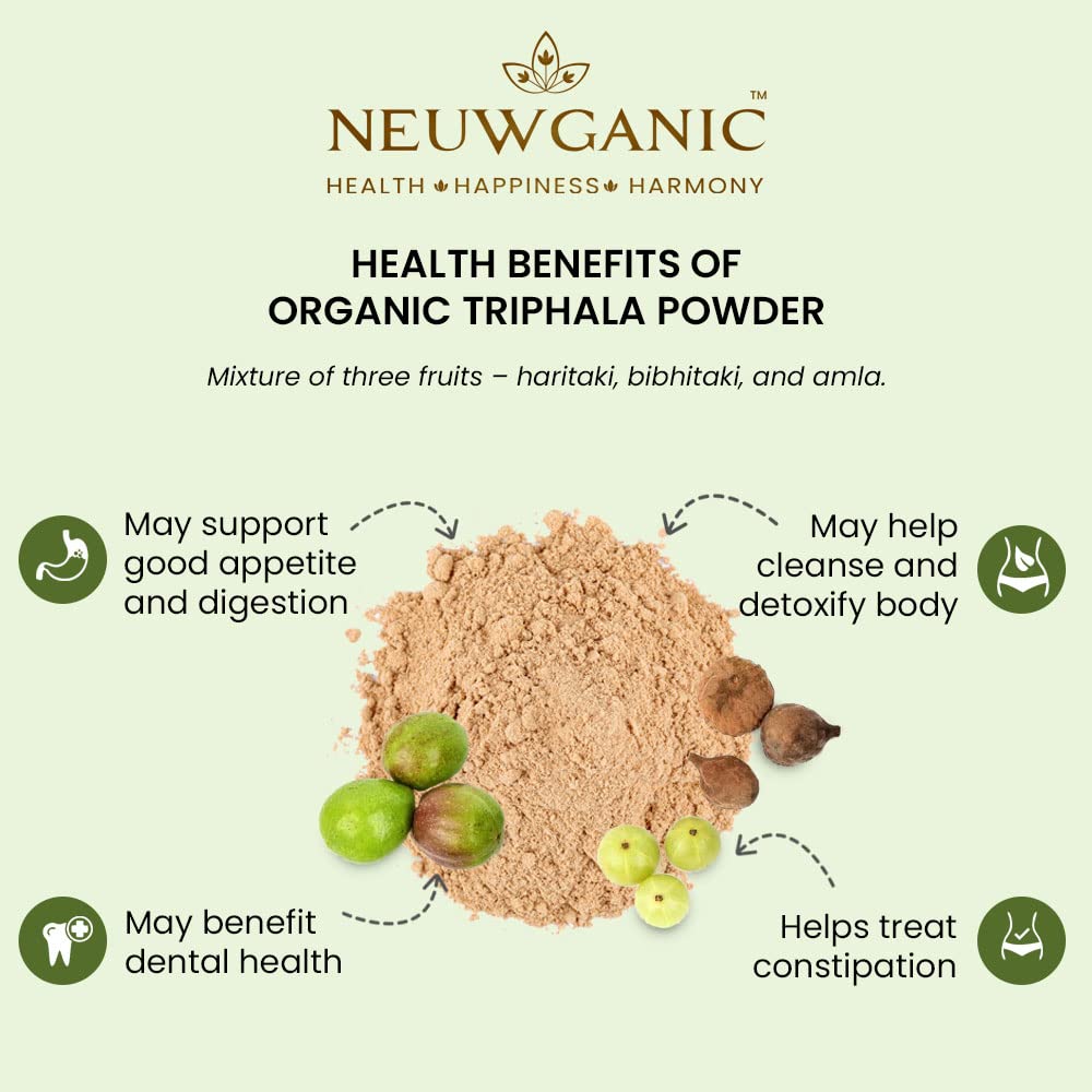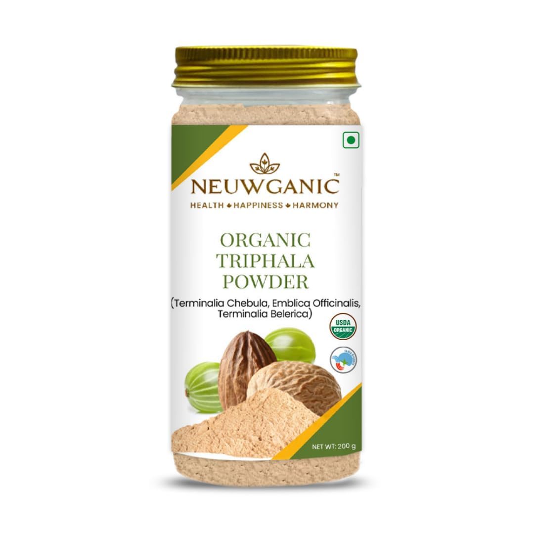 Neuwganic Organic Triphala Powder - 200 Gm - India Organic and USDA Organic Certified - Triphala Churna Powder - Quick Acidity & Gas Relief - Pack of 1