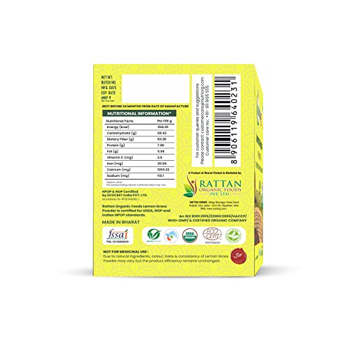 Nutriorg Lemon Grass Powder 200gIndian Tea Masala mix| Unprocessed Used as Detox
