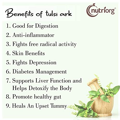 • The Nutriorg Tulsi Ark's health benefits encompass oral care