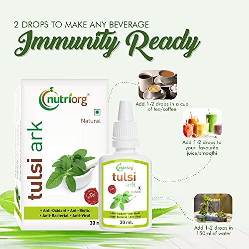 Nutriorg Tulsi Ark 60 ml (Pack of 2 x 30 ml) | Panch Tulsi Ark Drops | Concentrated Extract of 5 Rare Tulsi | Natural ing