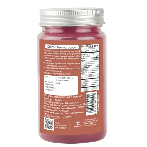 Praakritik Organic Beetroot Powder 100% Organic 100% Natural 100% Vegetarian Rich in Antioxidants Pack of 2 100 Grams Each
