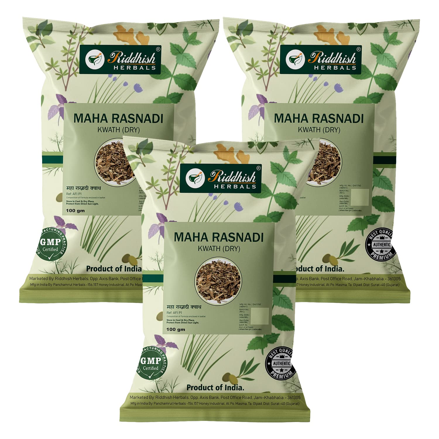 Riddhish Herbals Maha Rasnadi Kwath (Dry) 100 gm x Pack of 3 Natural Ayurvedic Herbal Kadha - For Pain Over Knees Ankles and Joints Strengthen Muscles Improves Flexibility Enhance Mobility