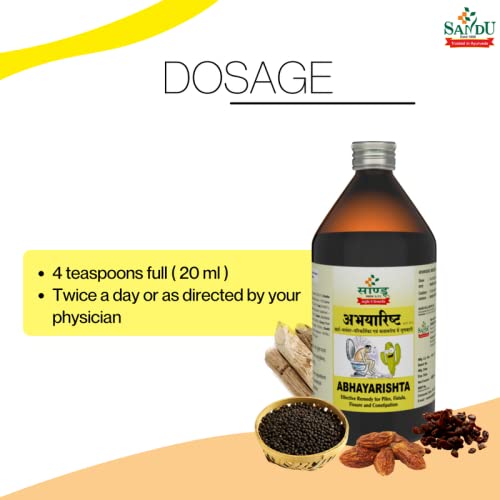Sandu Abhayarishta improves appetite & digestion. Abhayarishta is an excellent laxative relives constipation & tendency for hard stools Improves digestion and rejuvenates the digestive system.About Brand:-Sandu Pharmaceuticals also popularly called Sandu Ayurveda by people is one of the renewed brands when it comes to Ayurvedic health care products or medicines. Sandu Ayurveda Medicines are backed by a rich heritage and more than 120 years in the manufacture and marketing of Ayurvedic medicines.Sandu is an ISO 9001:2000 certified group of companies. It is the best place to explore the world of Ayurveda ayurvedic medicines and to buy medicines online. Ayurveda has been a part of the great heritage of Indian science. During British rule Ayurveda was not considered an idealistic way of medicine and was looked down upon by modern classes but it was during these adverse times that a few inspired people staked their lives to restore glory to this magnificent legacy.The name âSanduâ leads in this roll call of honour. On 10th May 1899 Sandu Brothers chose to reinvent the manufacturing of Ayurvedic medicines. Their commitment to spread and educate about the goodness of Ayurveda and bringing health even to the poor are the ideals that have been the foundation of their success.The name Sandu now stands as a benchmark of quality amongst doctors practitioners and common people alike.