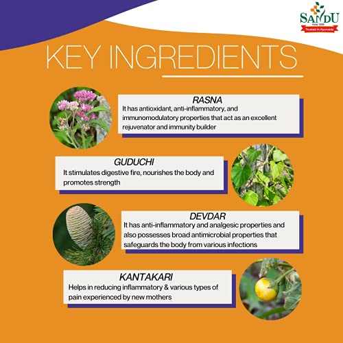 • An ancient herbal blend of several powerful Indian spices -Rasna (Vanda roxburghii) Guduchi (Tinospora cordifolia) Vasa (Adhatoda vasica) Devadaru (Cedrus deodara) Vidanga (Embelia ribes) Shunthi (Zingiber officinale)