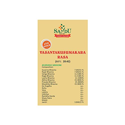 pSandu Vasant Kusumakar Ras is ayurvedic formulation and has many benefits./p pAbout Brand:-/p pSandu Pharmaceuticals also popularly called Sandu Ayurveda by people is one of the renewed brands when it comes to Ayurvedic health care products or medicines. Sandu Ayurveda Medicines are backed by a rich heritage and more than 120 years in the manufacture and marketing of Ayurvedic medicines./p pSandu is an ISO 9001:2000 certified group of companies. It is the best place to explore the world of Ayurveda ayurvedic medicines and to buy medicines online. Ayurveda has been a part of the great heritage of Indian science. During British rule Ayurveda was not considered an idealistic way of medicine and was looked down upon by modern classes but it was during these adverse times that a few inspired people staked their lives to restore glory to this magnificent legacy./p pThe name ââ¬ÅSanduââ¬Â leads in this roll call of honour. On 10th May 1899 Sandu Brothers chose to reinvent the manufacturing of Ayurvedic medicines. Their commitment to spread and educate about the goodness of Ayurveda and bringing health even to the poor are the ideals that have been the foundation of their success./p pThe name Sandu now stands as a benchmark of quality amongst doctors practitioners and common people alike./p