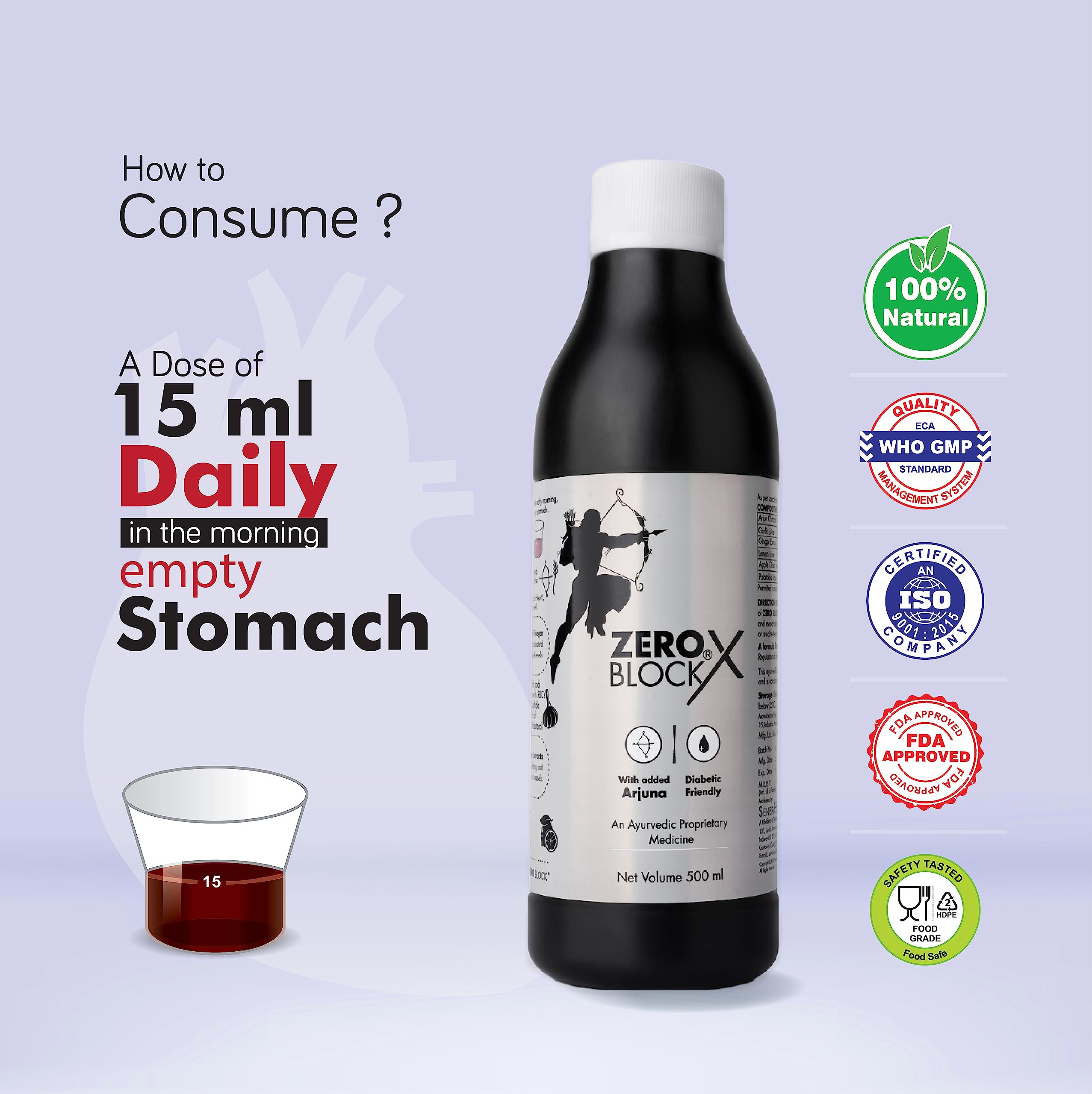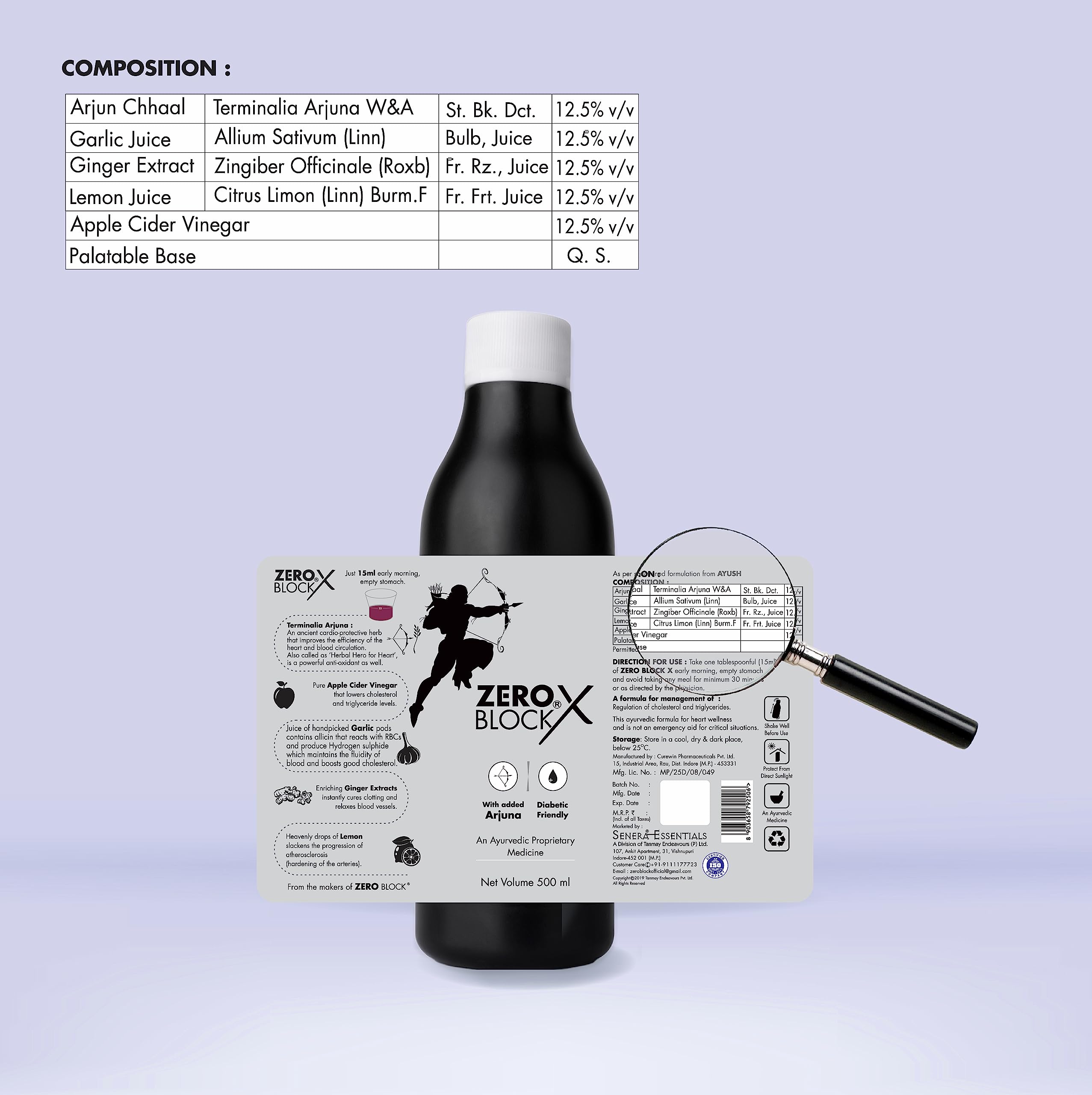 SENERA Zero Block X Arjuna Apple Cider Ginger Garlic And Lemon Diabetic-Friendly Ayurvedic Concoctions For Heart Wellness Syrup Pack Of 1 500Ml