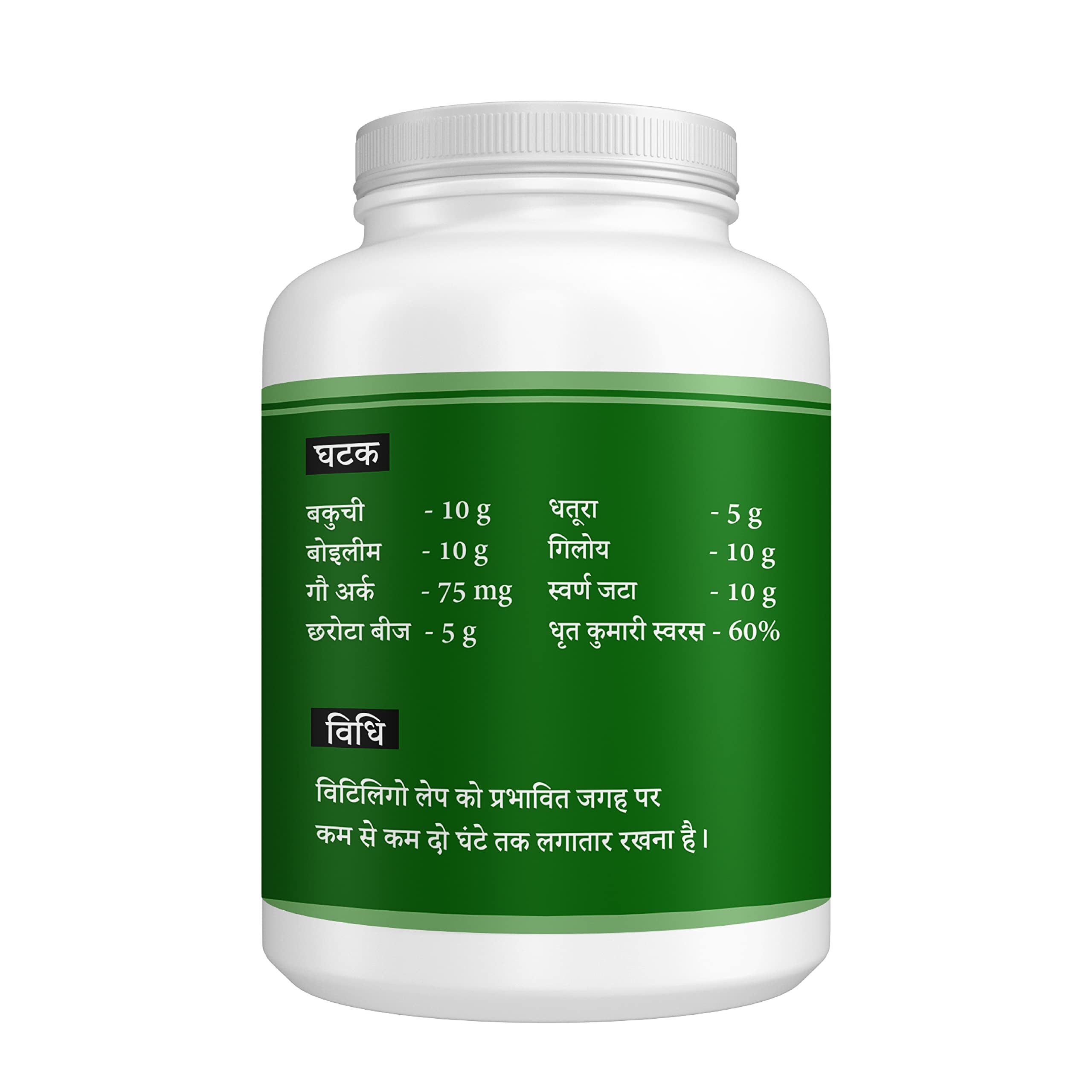 Reduces Skin Pigmentation: It is made of all herbal and medicinal herbs to reduce all types of skin pigmentation that is left behind due to Vitiligo/Leukoderma.