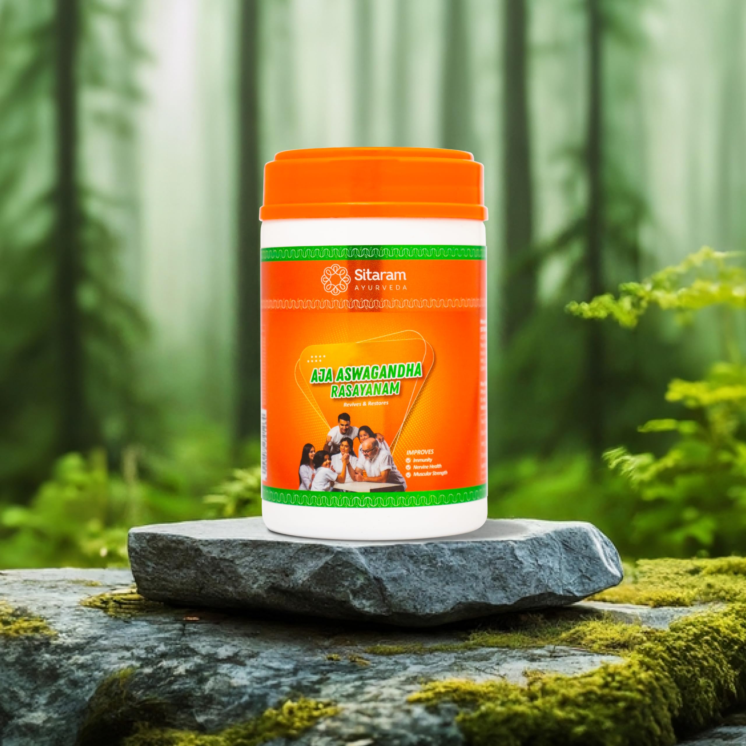 The term Rasayana in Sanskrit stands for revival. Ajaswagandha rasayana is a jaggery-based nourishing “avaleha preparation that has Aswagandha ( Withania somnifera) and Ajamamsa (Goats meat) as its key ingredients. Goats meat is hailed by classic Ayurvedic literature as the meat that is most conducive and strengthening to the human body. Avaleha preparation is a sweet and palatable adaptation of Kashaya or herbal decoction. Rich in nutrients it may be used to supplement a meal in persons with healthy . Aja Lehyam o contains fragrant spices and appetite stimulants like Cumin Cardamom Black pepper Long pepper etc.