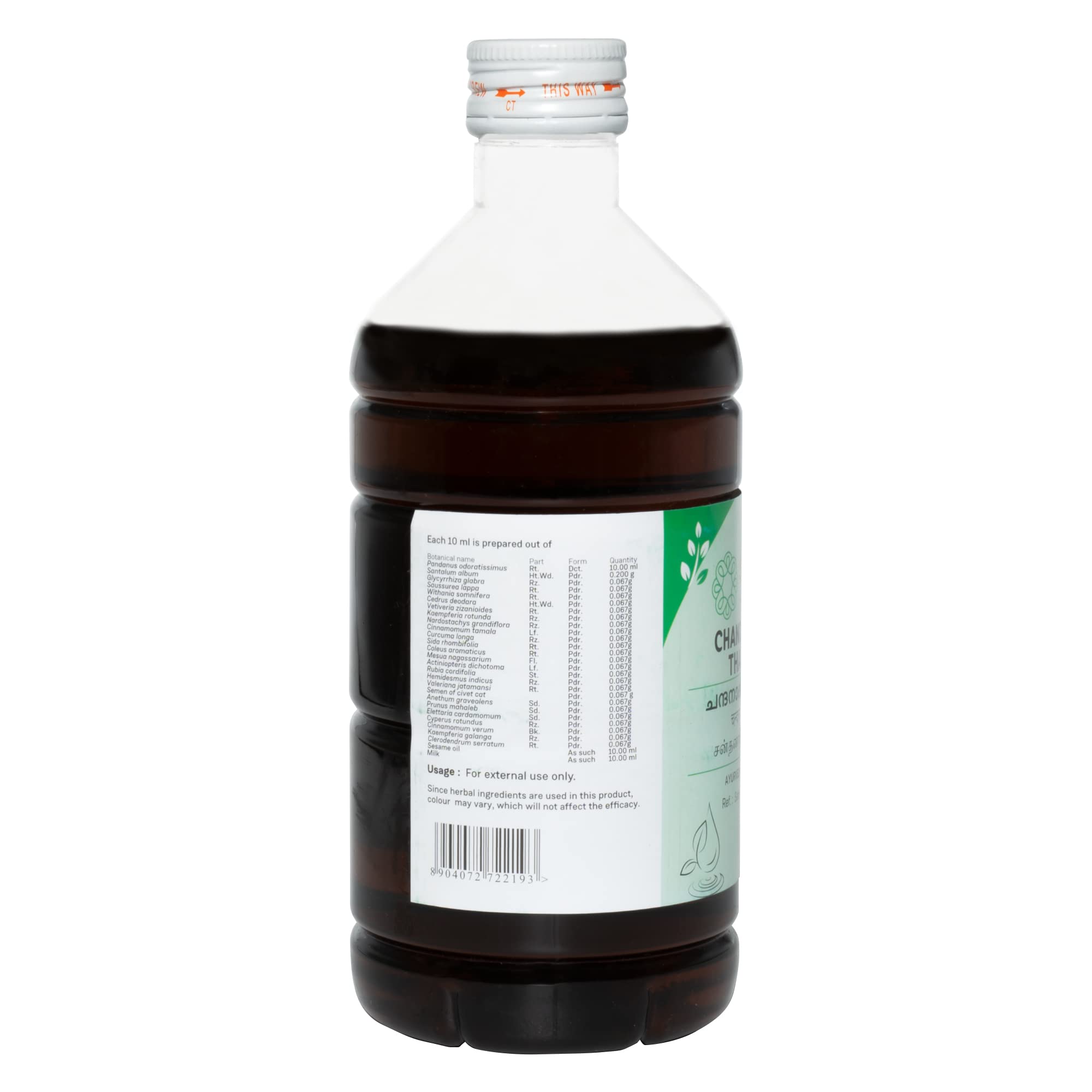 The fragrance of White Sandal is associated with coolness calmness and earthiness. The state that this heartwood instills within the human body resonates very well with a grounded and peaceful state of being. Chandanadi tailam is a traditional recipe that combines the deeply cooling and pitta pacifying effect of herbs like Chandana Madhuka Kushta Ashwagnadha Cows milk to name a few in a satiating base of sesame oil. Chandanadi thailam also contains herbs like Jatamansi and Nata which have a calming and rejuvenating application on the brain and central nervous system. It is extensively used as moordhataila (application to head) application and abhyanga (body massage) to manage physical and mental ailments arising from aggravated pitta in the body. Moordhataila the application of oil on the head is a practice endorsed by Ayurveda scriptures. The head is the most significant part of the body. It encompasses eight vital opening - the eyes ears nose and mouth and one significant but subtle access point to the well being of the body - the crown of the head. Application of oil on the head while imparting obvious and sustained health to your tresses at a more subtle level it works effortlessly towards the well-being of your entire body.