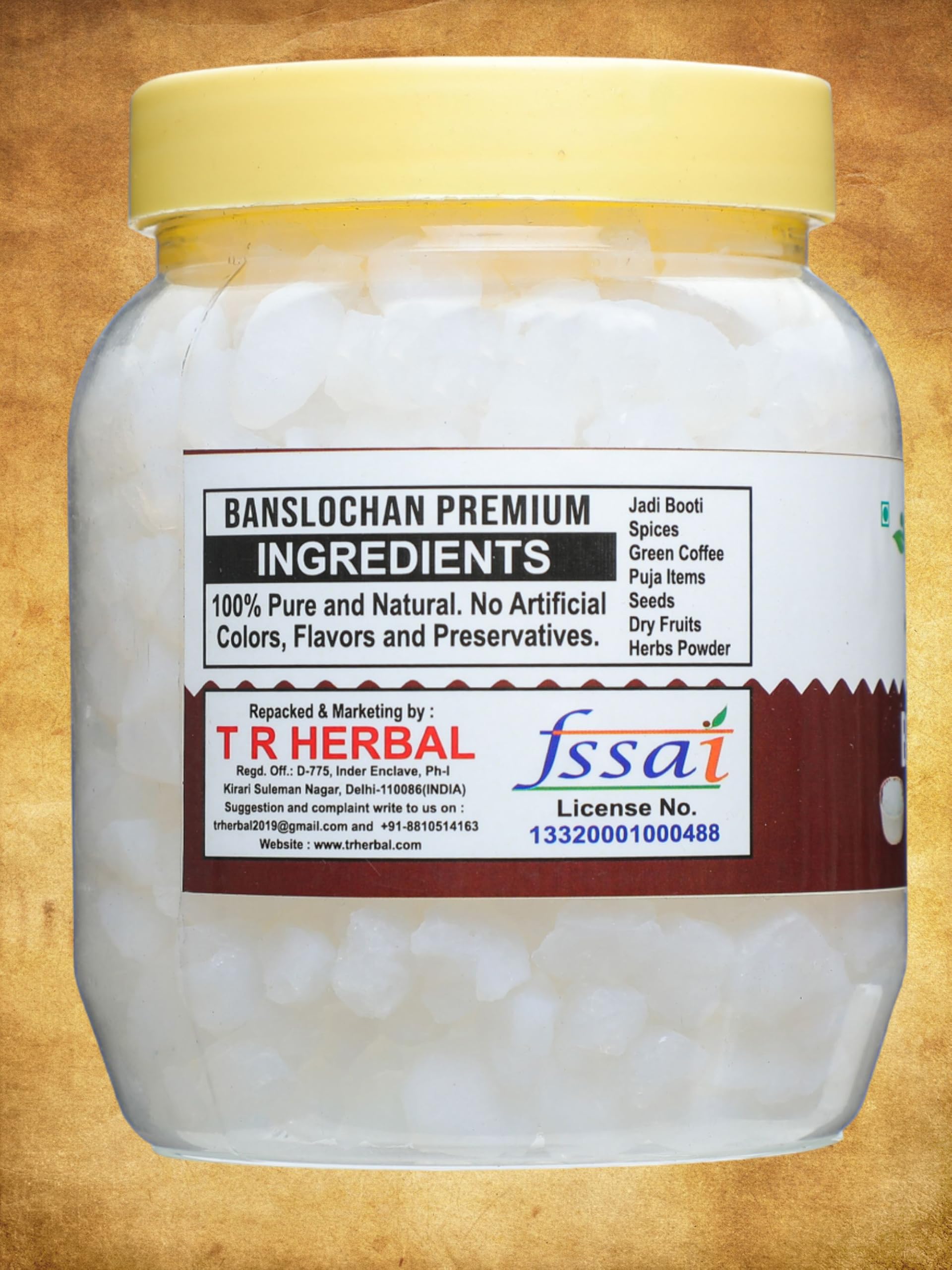Banslochan is used for Weak Bones Wrinkles Cough Frizzy Hair Dry Skin Arthritis Arthritic and Convulsion. It is Fresh and Pure.