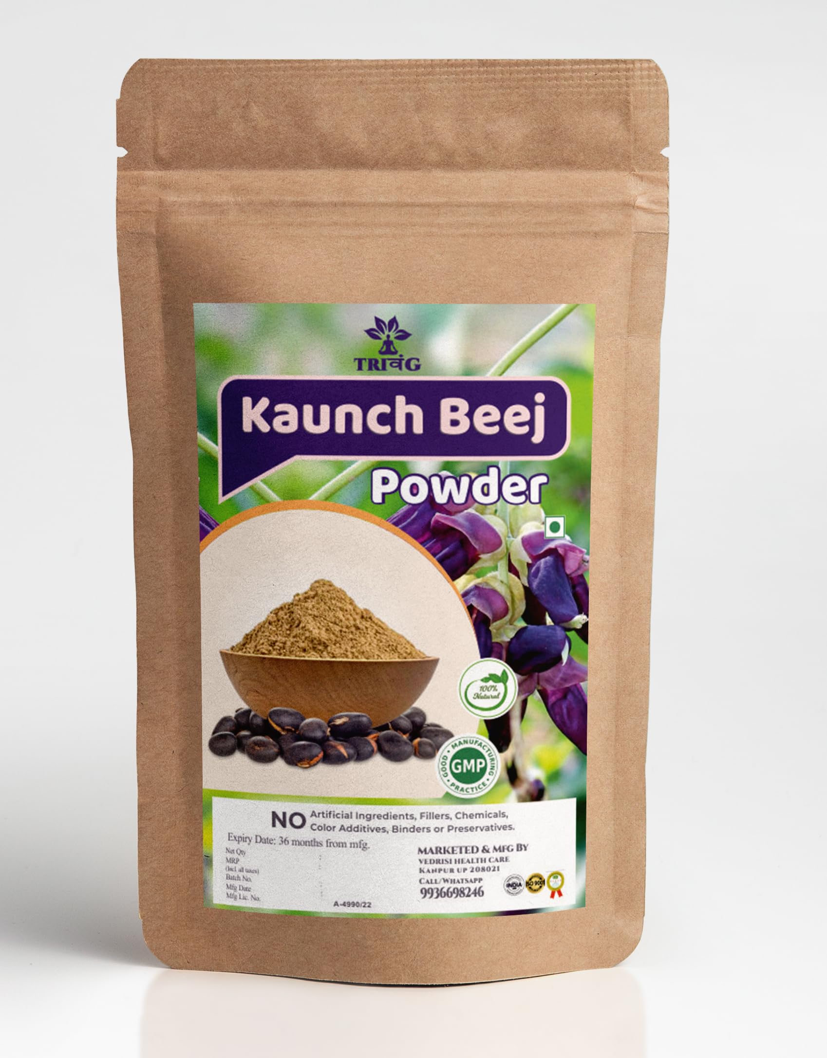 Trivang Black Kaunch Beej Powder Konch Seed Alkushi (200 Grams) Kala Koch ke Beej Kauch Mucuna Pruriens Velvet Beans Kapikachhu Cowitch Cowhage (100g)