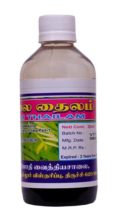 Discover the soothing and therapeutic power of Vetpalai Oil a natural solution to address various skin concerns. Formulated with the finest ingredients this oil is designed to provide relief from itchy skin psoriasis dandruff and an itchy scalp. Key Features: 1.Natural Ingredients: Vetpalai Thailam contains vetpalai leaves(Wrightia Tinctoria) and Coconut oil (Cocos Nucifera ). Wrightia Tinctoria helps to detoxify the skin and it is useful in skin disorders. It is antifungal in nature. 2.Itchy Skin Relief: Vetpalai has been traditionally used for its anti-inflammatory properties making it an effective remedy for relieving itchy skin caused by various conditions. Whether you suffer from dryness redness or irritation Vetpalai Oil provides a calming solution. 3.Psoriasis Support: Manage the symptoms of psoriasis with Vetpalai Oil. The anti-inflammatory and moisturizing properties help soothe the discomfort associated with psoriasis promoting healthier and more comfortable skin. 6.Dandruff Control: Say goodbye to flaky and itchy scalp with Vetpalai Oil. Its nourishing formula helps combat dandruff providing a natural solution for a healthier scalp and hair. Say goodbye to discomfort and hello to healthier skin and hair with Vetpalai Oil. Embrace the power of nature for a confident and soothing skincare routine. Directions for Use: Apply Vetpalai Oil directly to the affected areas. Use regularly for best results.