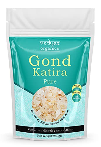 Vedyaz Organics Gond Katira Pure Organic (Edible Gum) tragacanth Crystals - 250 gm - Original Almond gum with High Cooling Properties | Almond Gum