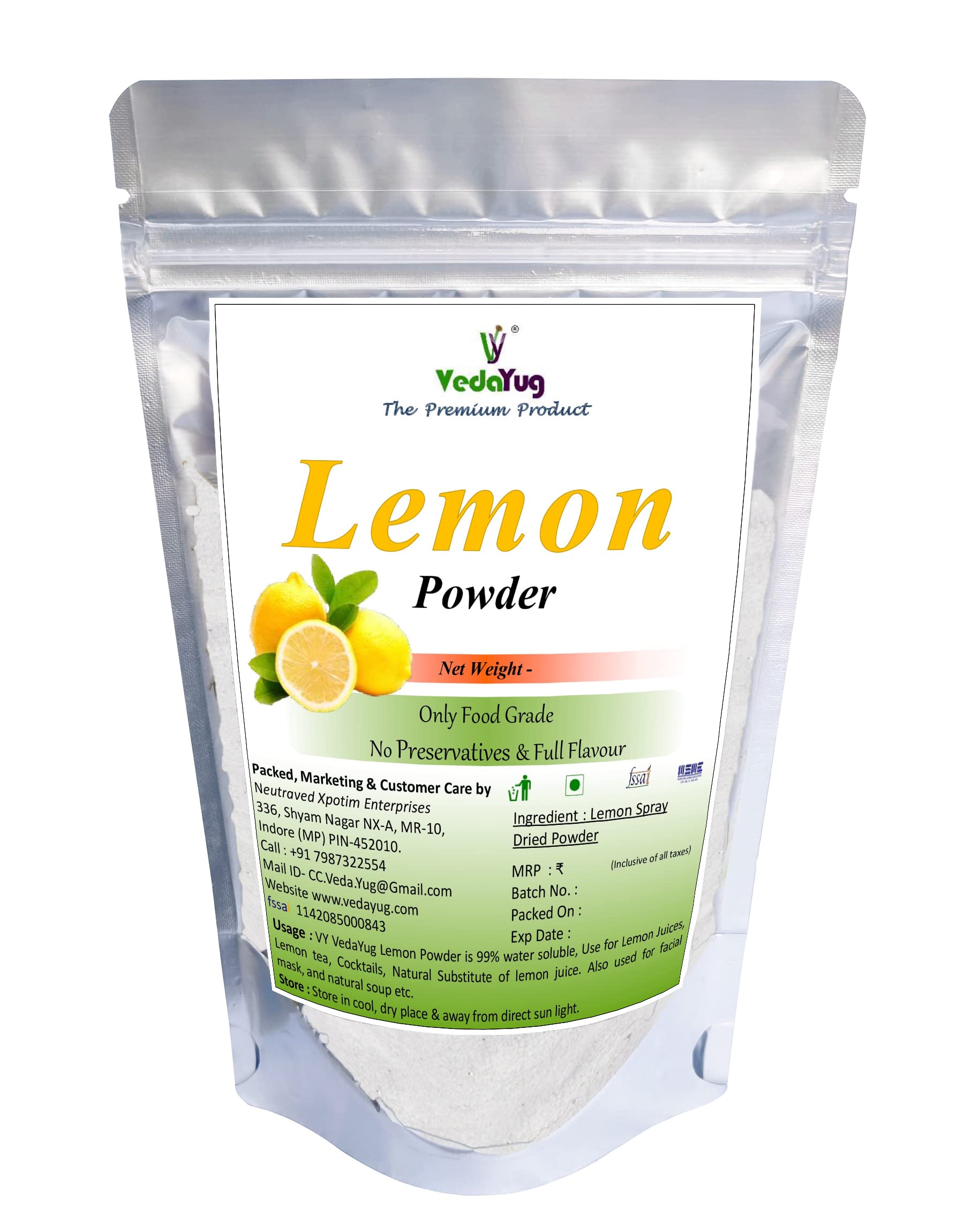 HomeHealth & PersonalDiet & NutritionHerbal FormulationsVY VedaYug Lemon Powder 200g | Natural Lemon in Resealable Pouch | 100% Water Soluble | Best for Flavoring Cooking & Juice | its Real Lemon Powder Without Any Mixing - 200g