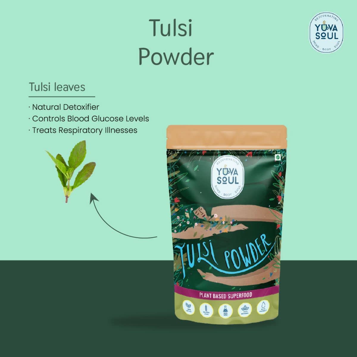 Tulsi herbal powder benefits skin and hair and also wards off bacterial infections
