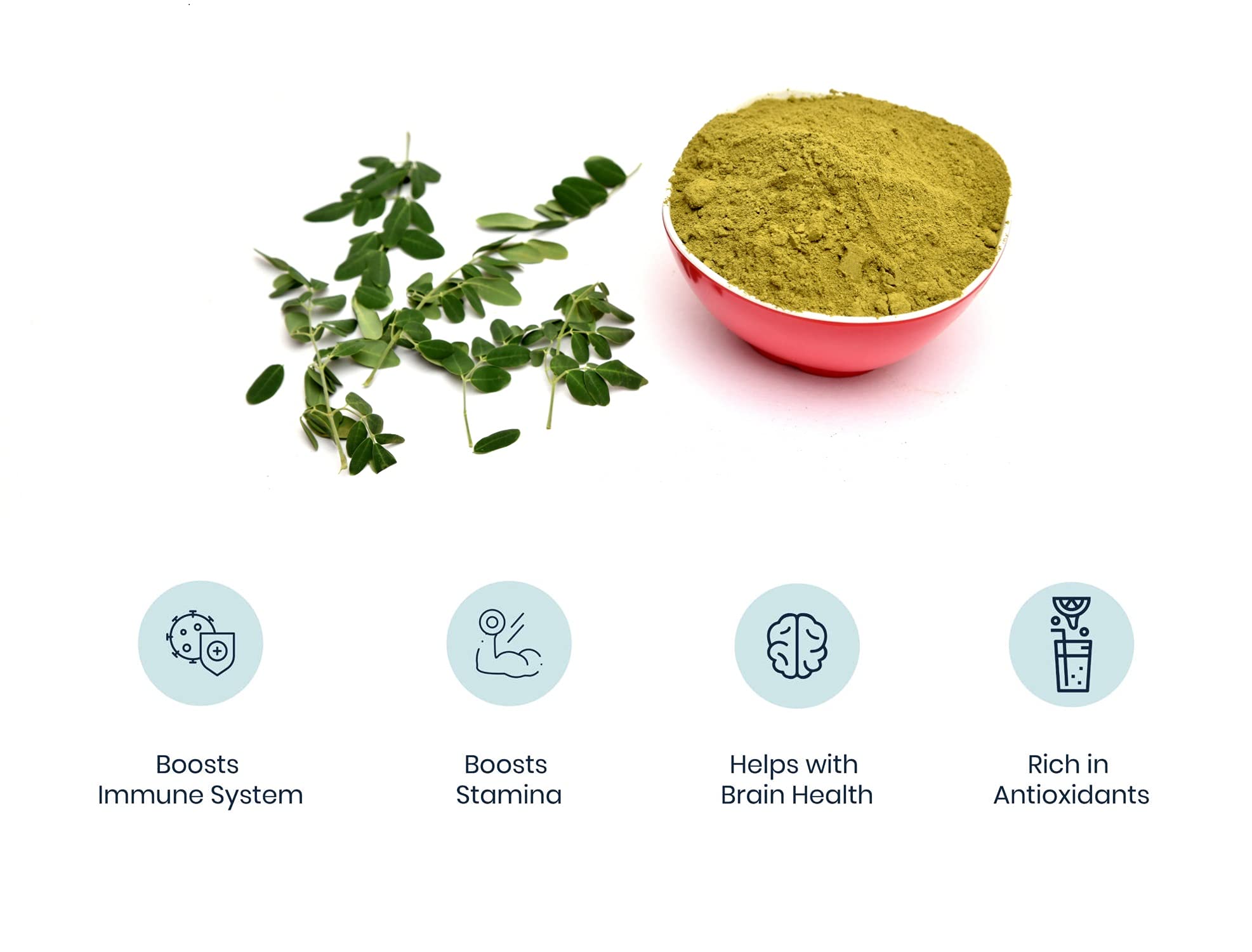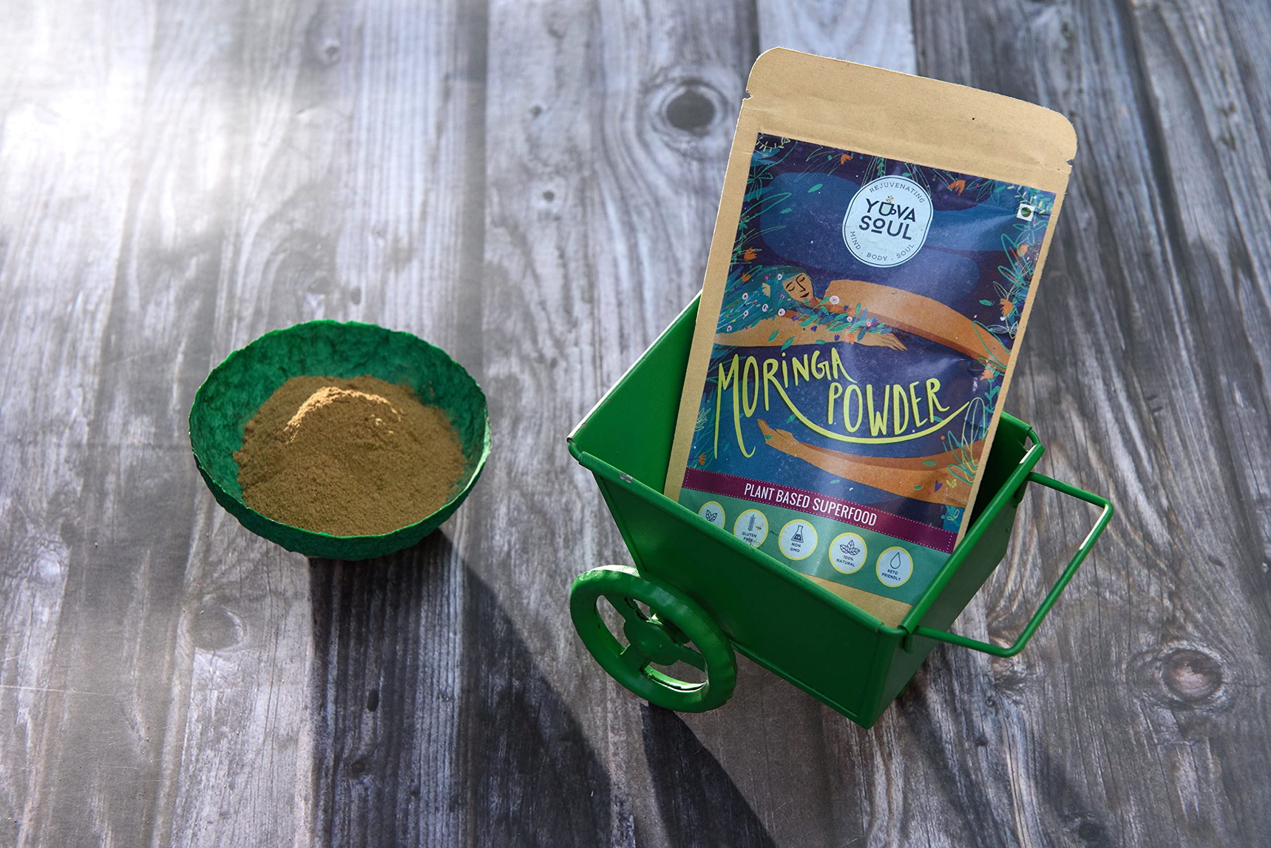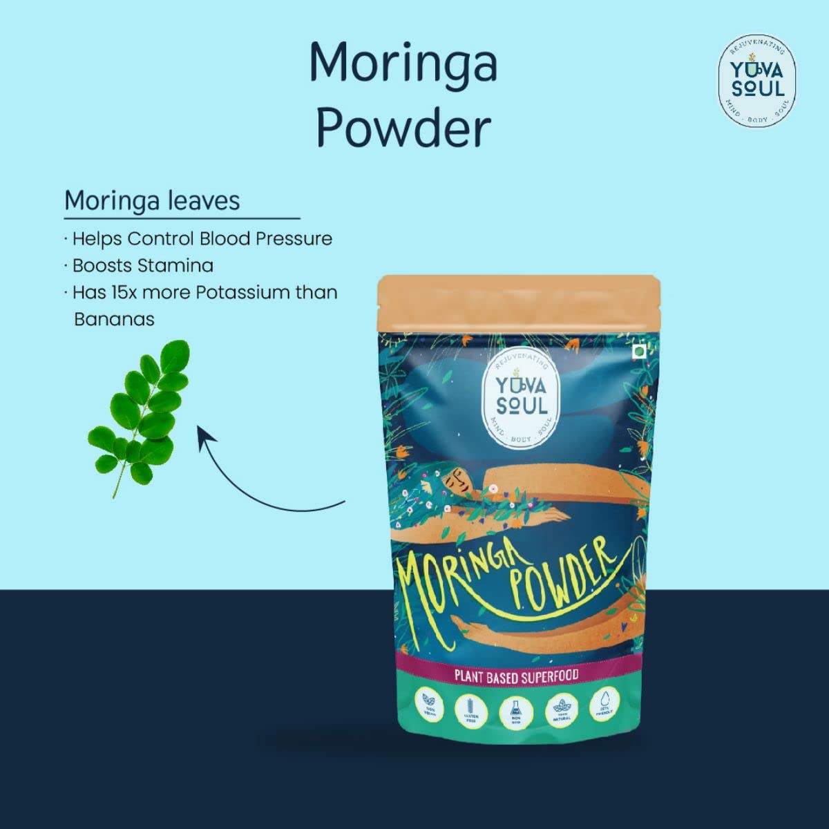 Produced from fresh leaves of the Moringa Oleifera tree also known as the Drumstick tree the Moringa leaf powder by Yuva Soul has a high nutritional profile and enriches wellbeing through its various health benefits. Loaded with Antioxidants the drumstick powder is rich in protein content..