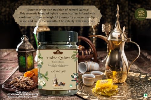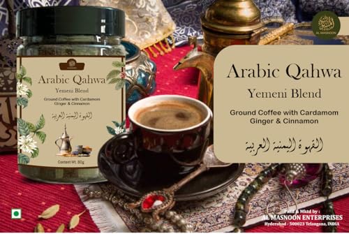 AL MASNOON Arabic Qahwa/Yemeni Blend/Arabic Coffee Medium Roasted With Ginger & Spices 80g (Pack of 1)