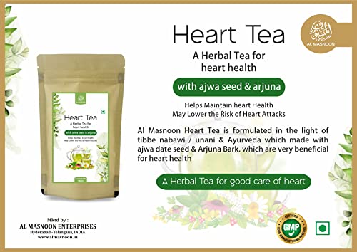 AL MASNOON Heart Tea with Ajwa Seed & Arjuna Herbal Tea for Heart Health 100g (Pack of 1)