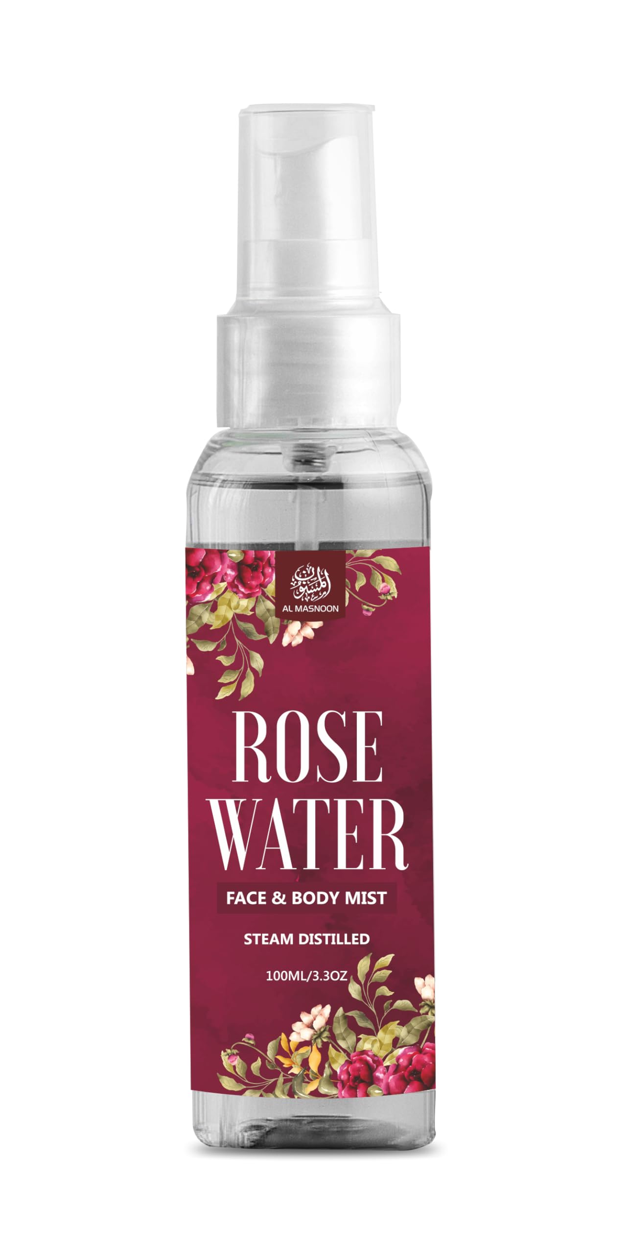 Al Masnoon Rose Water/Gulab Arq - Steam Distilled 100% Natural and Undiluted 100ml Pack of 1 Rose Water for Skincare Hydration and Aromatherapy